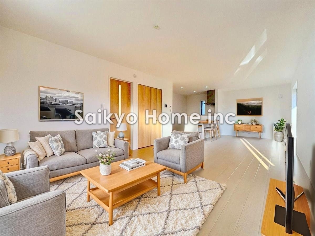 南向きの大きな窓からは柔らかな光が差し込み、1年を通して明るくリビングを照らしてくれます。自然と家族の笑顔と心穏やかな一時を感じる事ができる、そんな空間になりました。※家具等はCG加工しております。■八王子市東浅川町 新築一戸建■