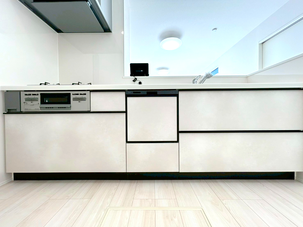 清潔感のある人造大理石トップ、フラットトップコンロ、食器洗浄乾燥機、ビルトイン浄水器などが標準装備。■府中市四谷2 新築一戸建■