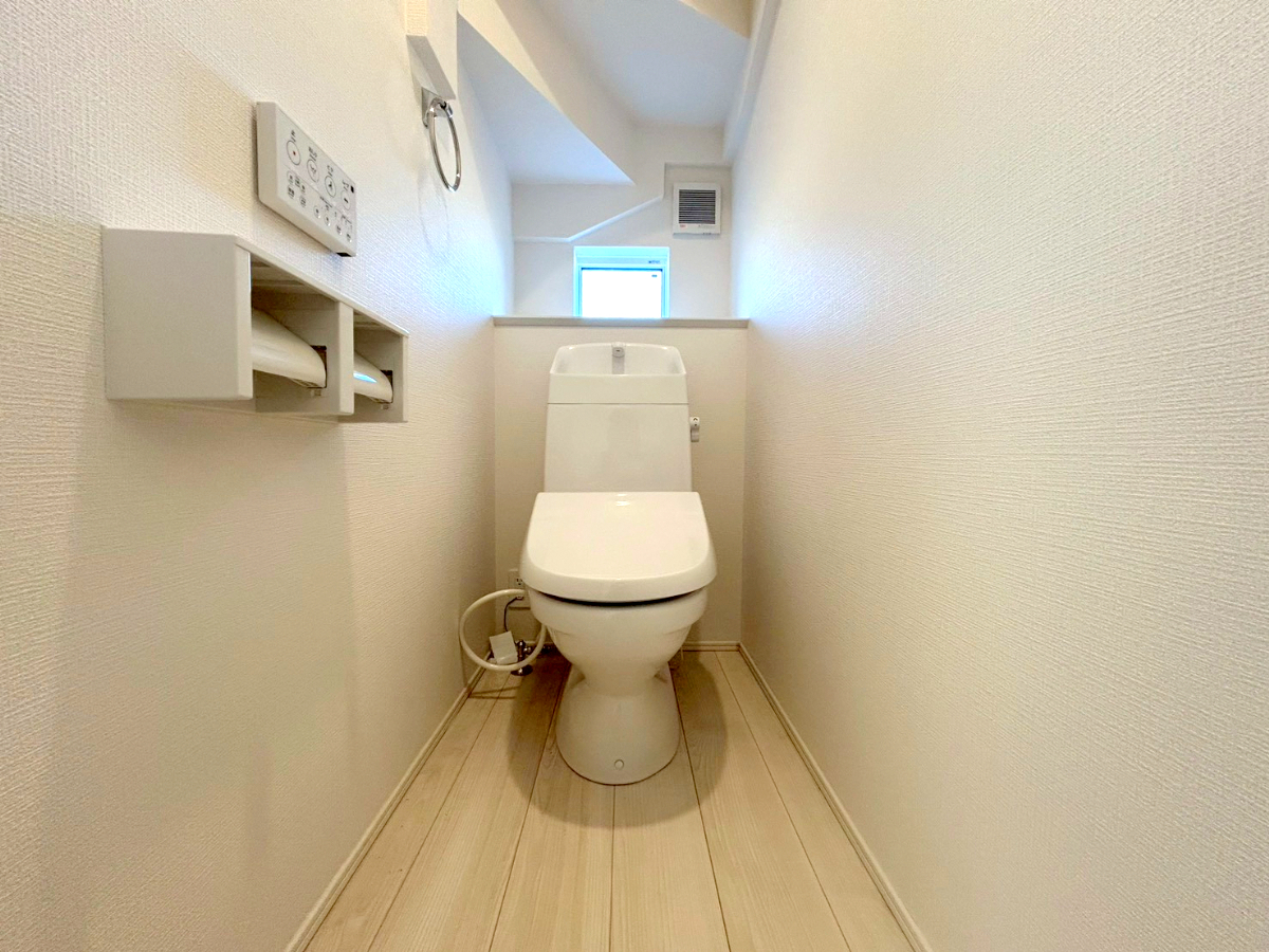 シンプルな機能を搭載したトイレ。家族みんなが使う場所だからこそ清潔にこだわりたいですね。■府中市四谷2 新築一戸建■