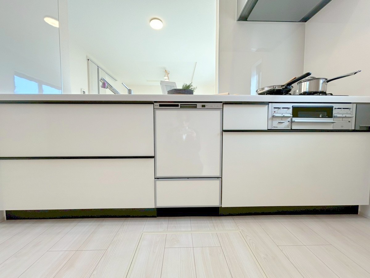 キッチンに立った位置から、リビングにいる家族に目線が届く見守りキッチン! ■調布市佐須町2 新築一戸建■