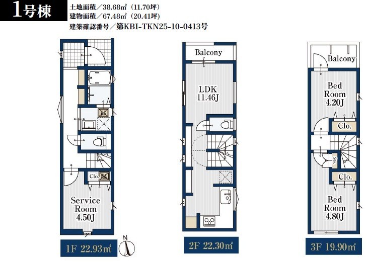 | 建物現況 | 建築中 | 建築確認番号 | 第KBI-TKN25-10-0413号 |