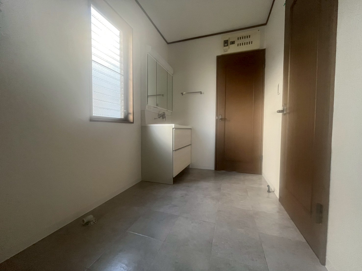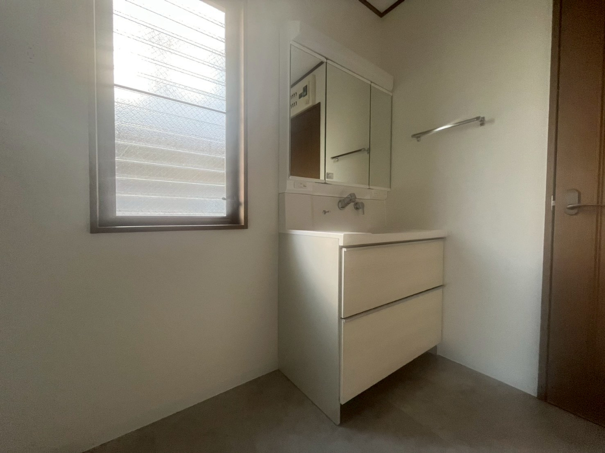 収納力と機能性に優れたお手入れラクラク三面鏡洗面化粧台です。朝の身支度にも大活躍!■立川市砂川町8 中古一戸建■