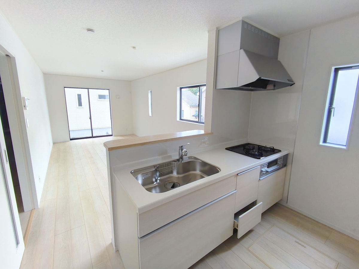 キッチンからリビング全体を見渡せるので、小さなお子様がいらしても様子を見ながら家事ができますね。 ■府中市清水が丘3 新築一戸建■