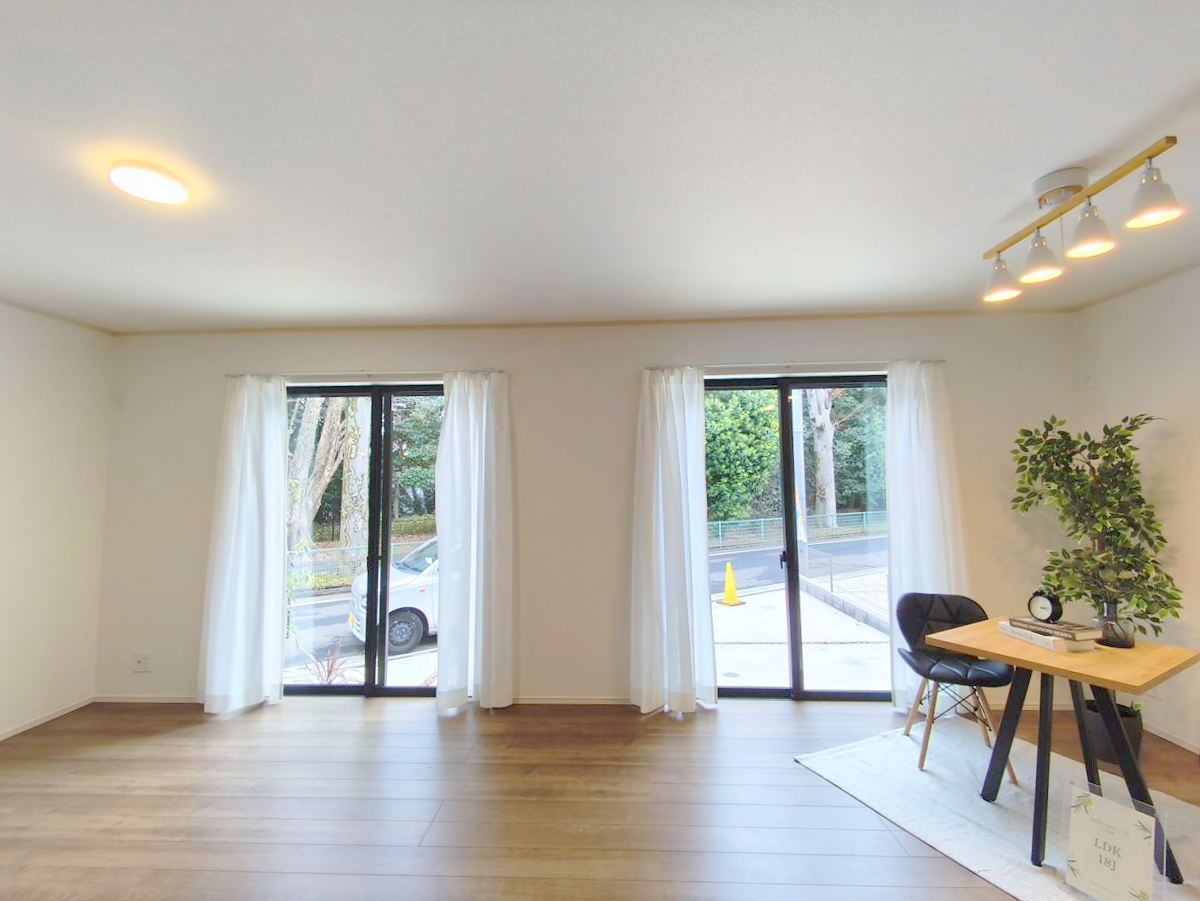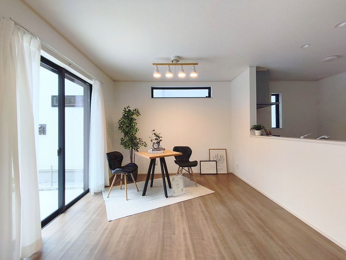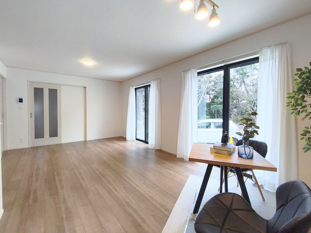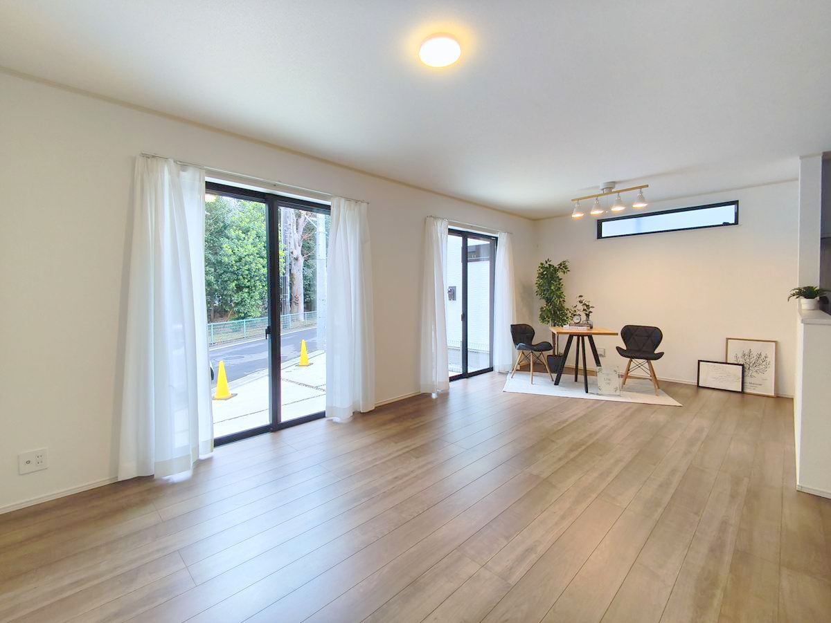 大きな窓からはお陽さまの光や爽やかな風をたっぷり取り込めます。室内はいつも明るい印象なので気持ちの良い朝を迎えられます。毎日の生活も明るくなりそう。 ■調布市深大寺1 新築一戸建て■