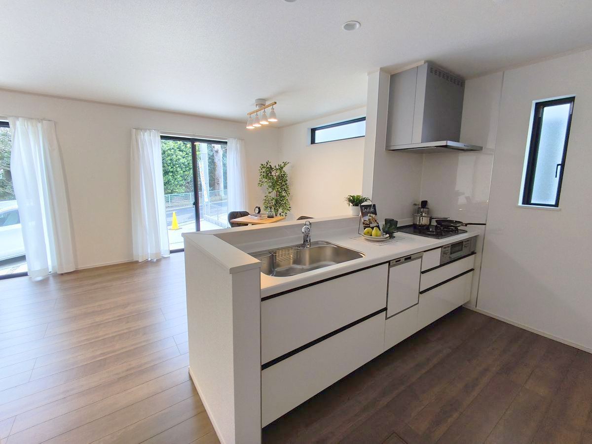 キッチンからリビング全体を見渡せるので、小さなお子様がいらしても様子を見ながら家事ができますね。 ■調布市深大寺1 新築一戸建て■