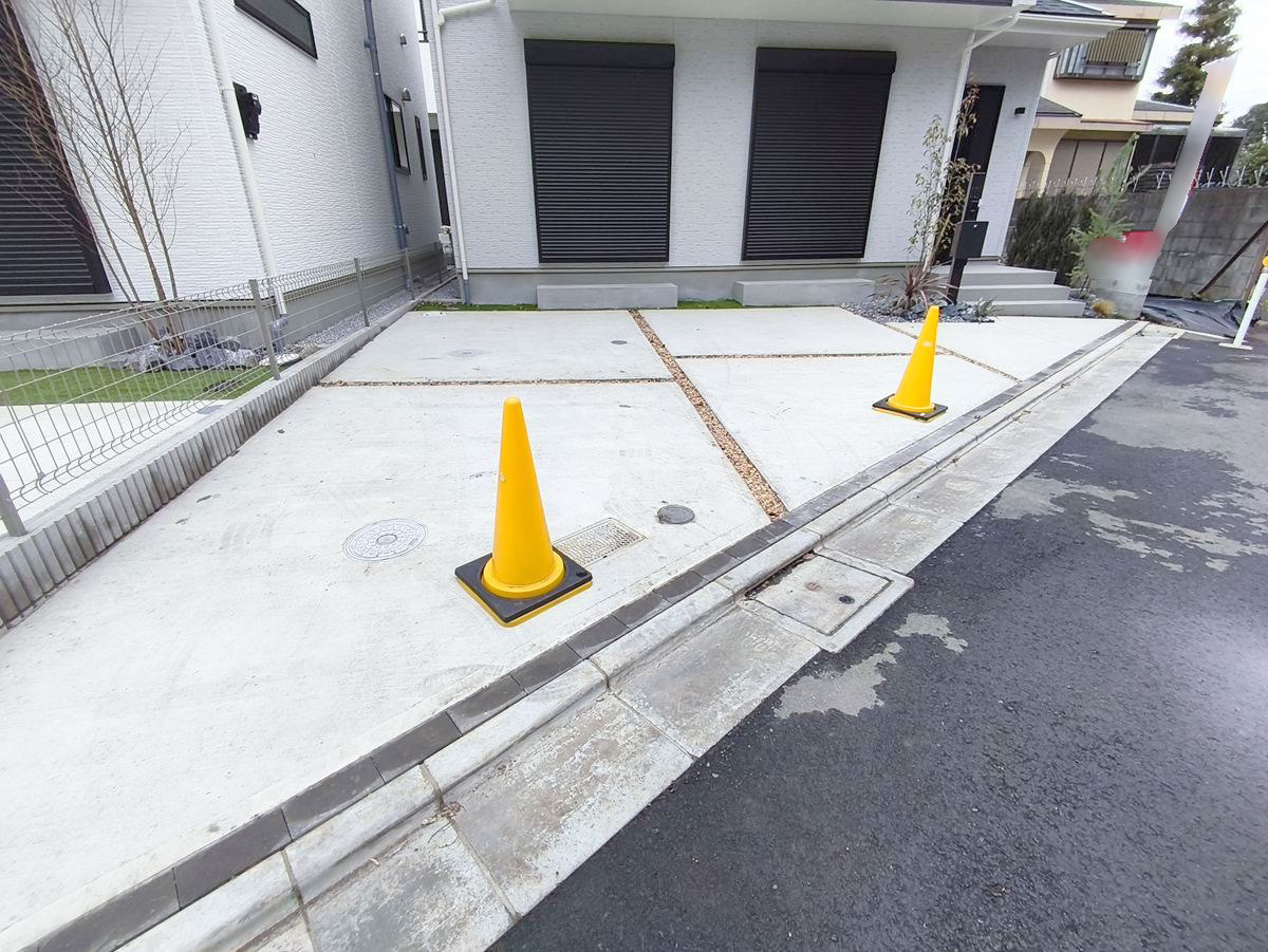 カースペースはコンクリート仕上げ。雨の日でも足元を気にすることなく駐車できます。 ■調布市深大寺1 新築一戸建て■