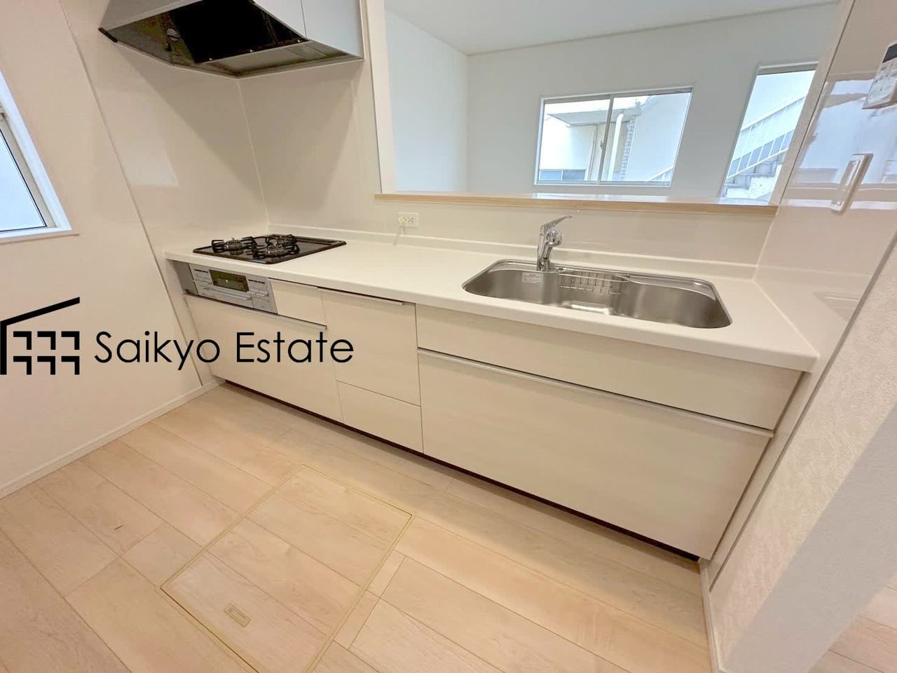 リビングにいる家族とコミュニケーションをとりながら作業が出来る人気のカウンターキッチン。お子様がリビングにいても目が届くので安心です。(6号棟)