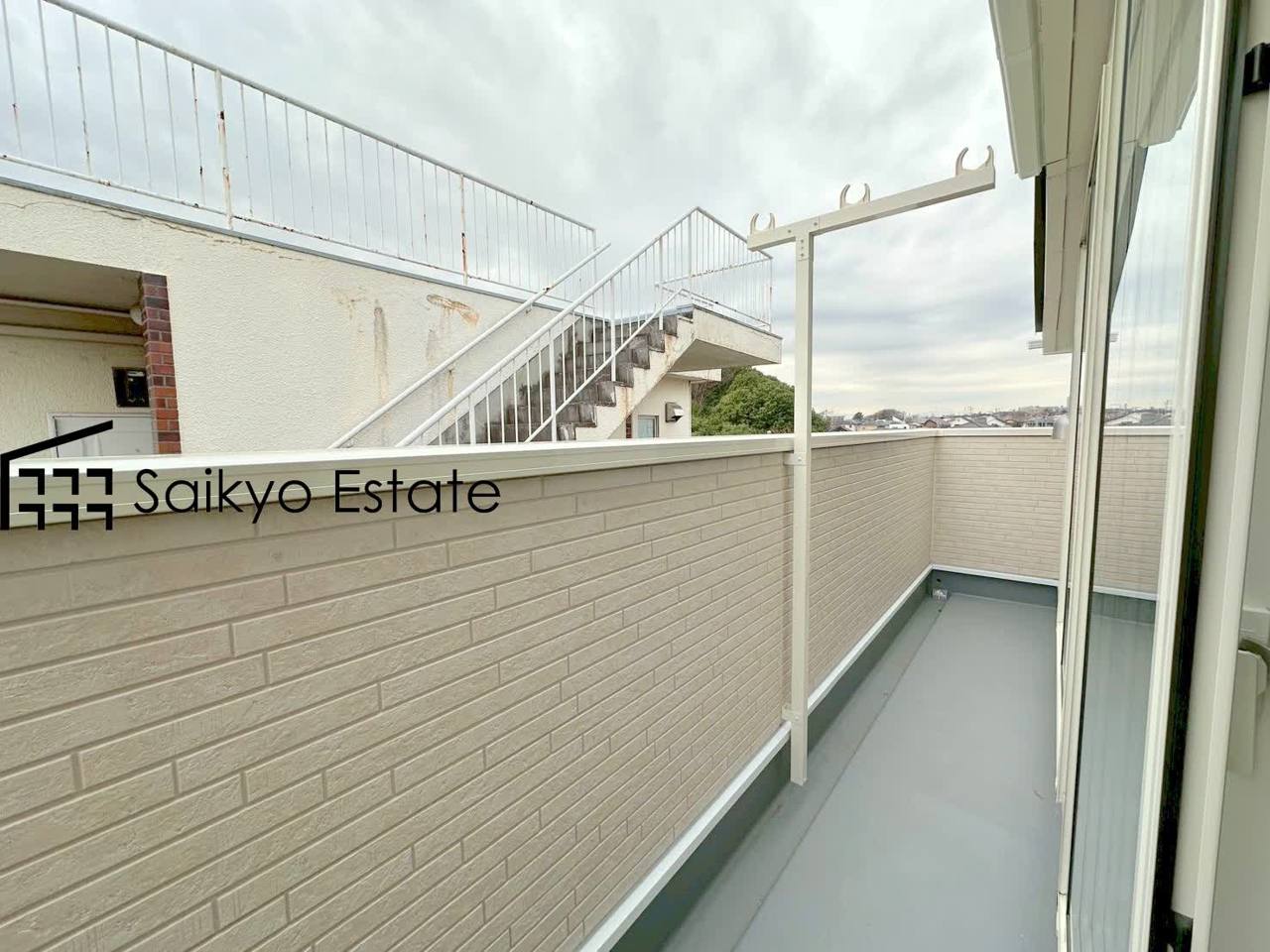 2部屋から出入りが出来る続きバルコニーは家事動線が良く、沢山の洗濯物やお布団がいっぺんに干せます!南向きで陽当たりも良好です♪(6号棟)