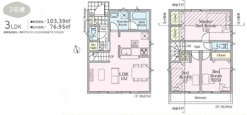 | 間取 | 3LDK (LDK15帖、洋室7.5帖、洋室5.25帖、洋室5帖) | ||