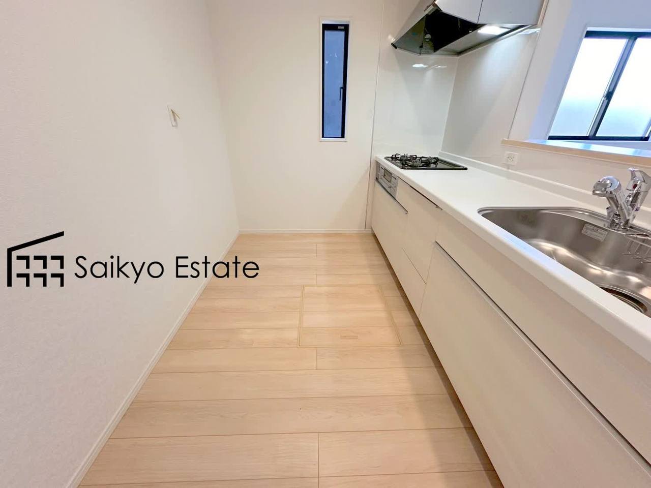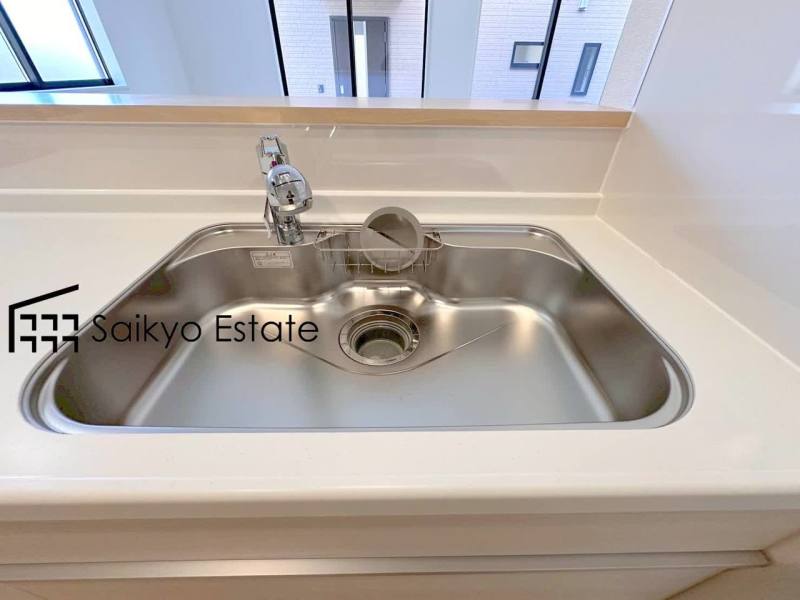 毎日の家事はより快適・便利に!ご家族様との会話を楽しみながら家事ができる対面キッチン。バックスペースは冷蔵庫やカップボードを配置しても充分な広さがあります。(6号棟)