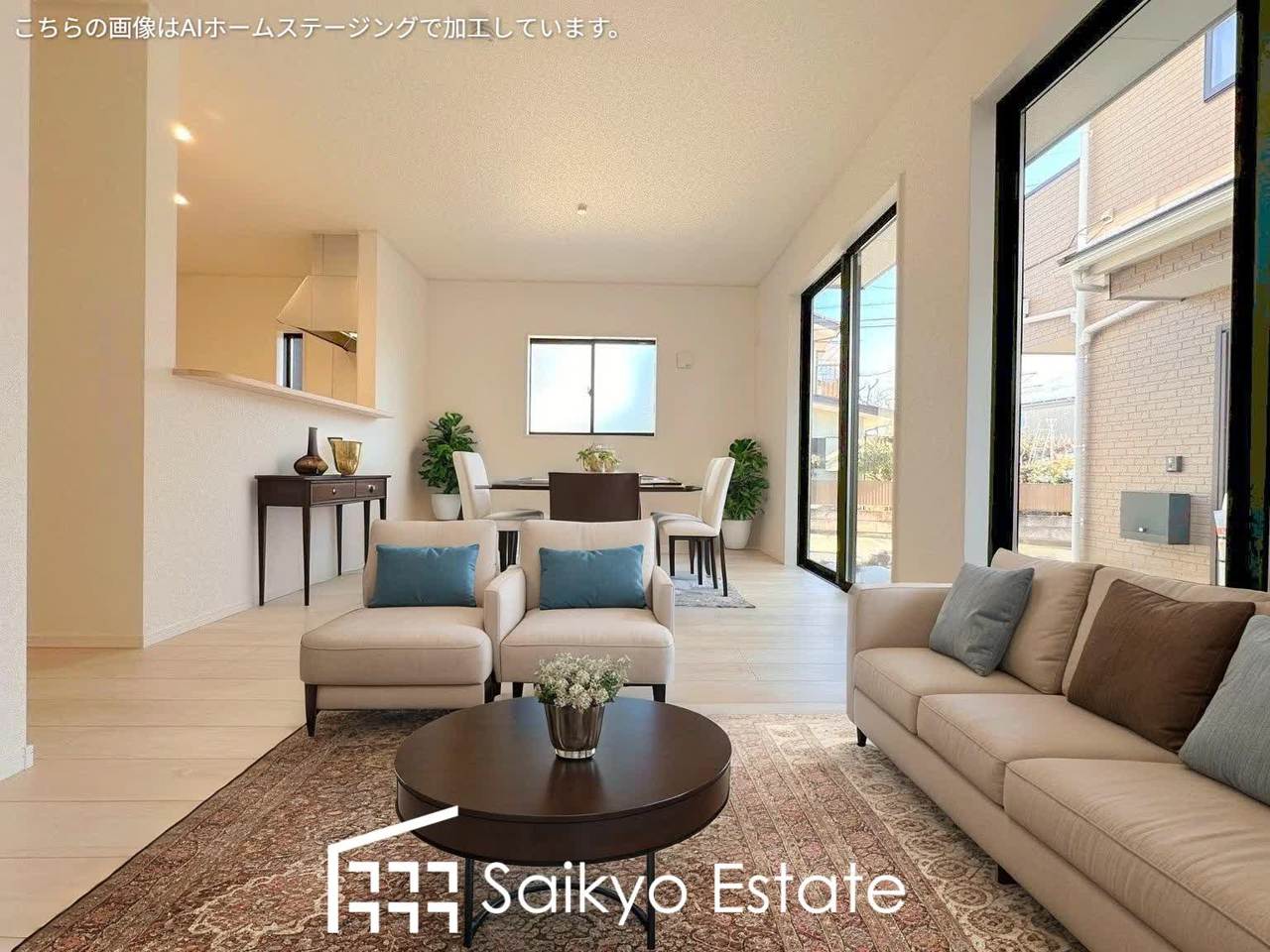 開放感と採光にこだわった広々としたLDKです。陽光いっぱいの空間で家族団らんの時間も増えそうですね!(6号棟)※家具類はCG加工しています。