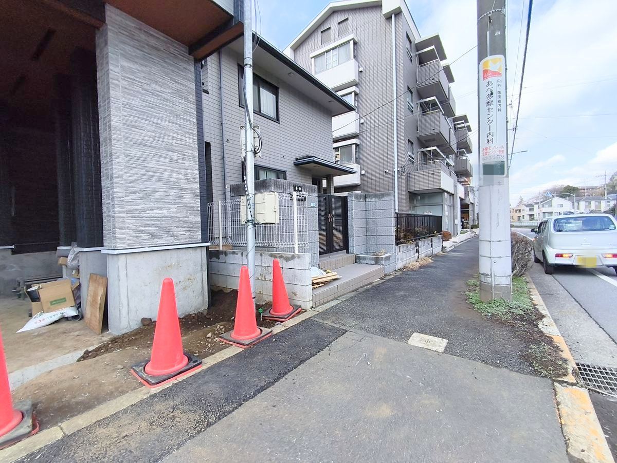 前面道路は歩道なのでお子様も安心です■多摩市豊ヶ丘1丁目 新築戸建て■