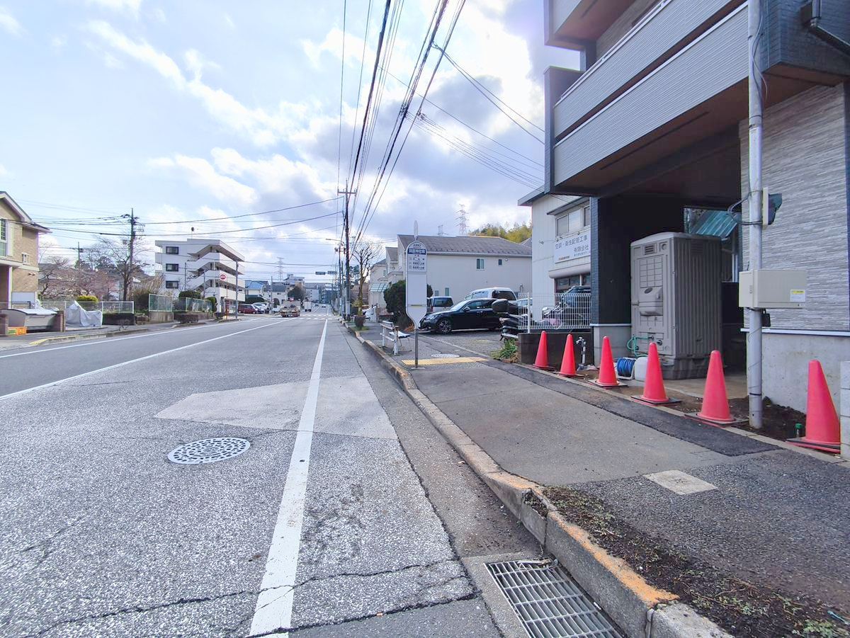 前面道路は16mの幅広な道路です。入出庫の際もらくらくです。 ■多摩市豊ヶ丘1丁目 新築戸建て■