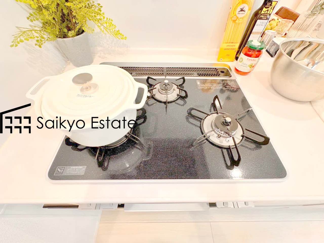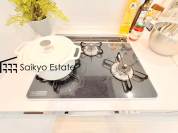 【施工例】「3口ガスコンロシステム」はたくさんの料理が同時に作れて便利な上、凹凸が少ないフラットトップなのでお掃除も楽々です。