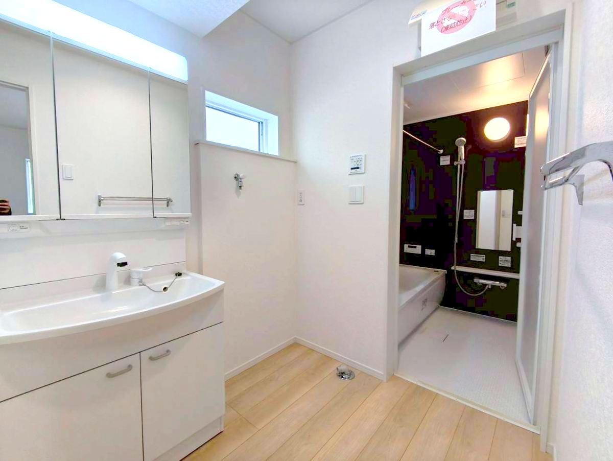 一日の疲れを癒すための心地よいバスタイムを演出する浴室はゆとりあるサイズを採用。浴室乾燥機付き!■立川市若葉町3 新築一戸建て■