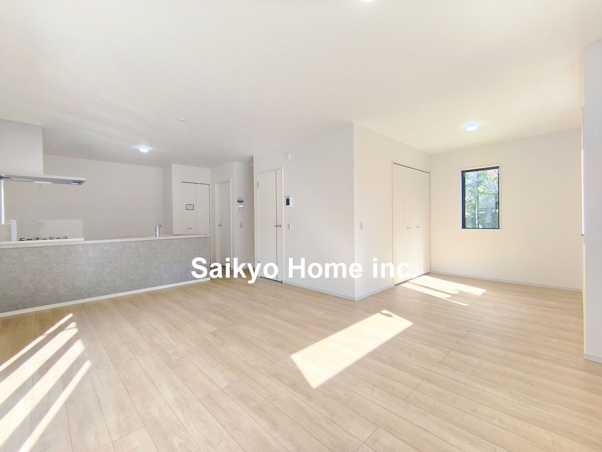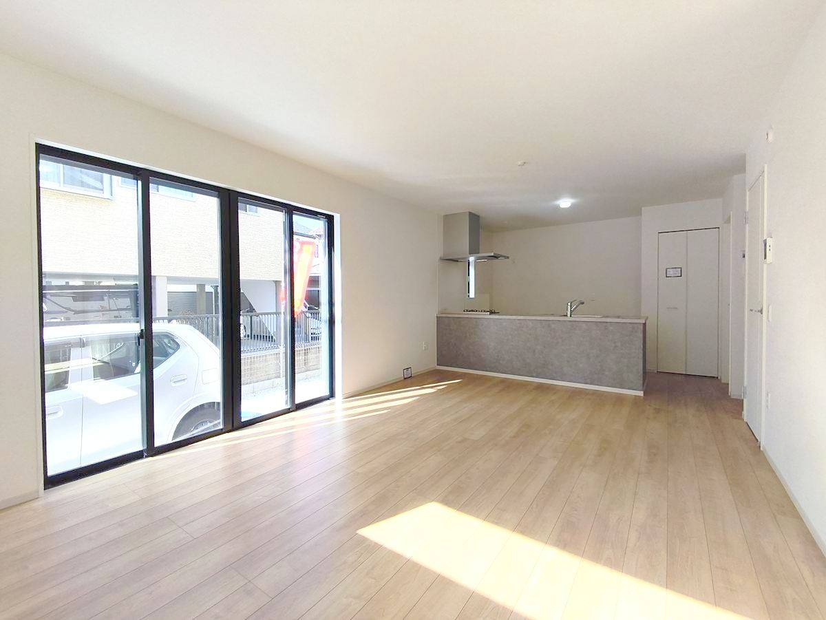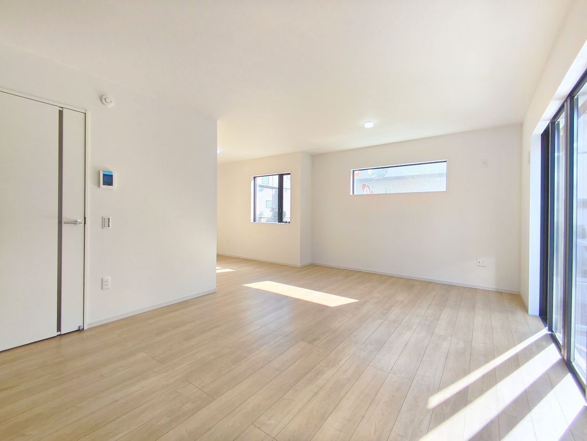 20帖超の広々LDK。南に面した窓からは暖かな陽光がたっぷり差し込みます。また通気性にも優れた設計です。 ■八王子市元横山町3 新築一戸建て■