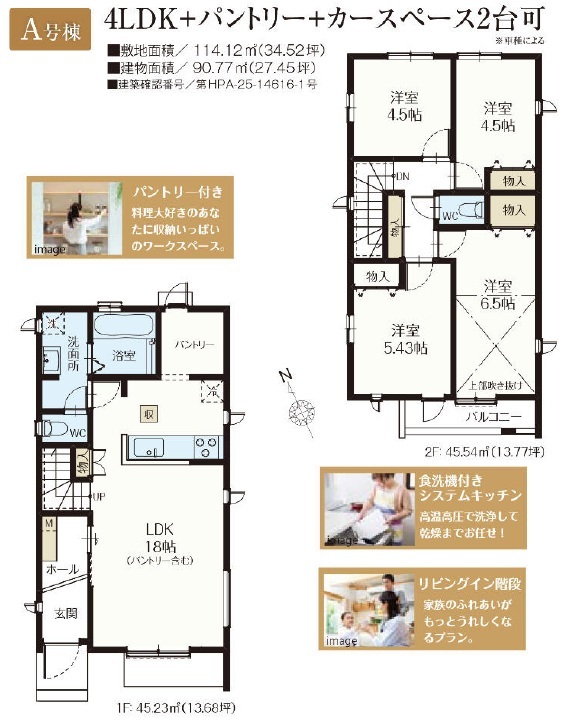 | 間取 | 4LDK+パントリー (LDK18帖、洋室6.5帖、洋室5.43帖、洋室4.5帖、洋室4.5帖) | ||