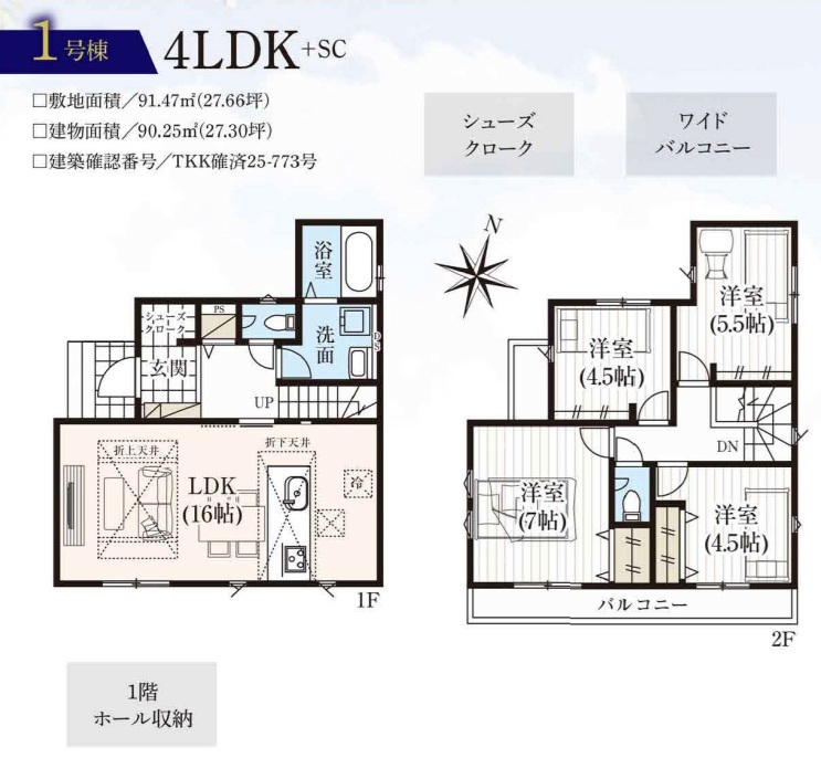 | バルコニー | 南向き | 建築確認番号 | TKK確済25-773号、他 |