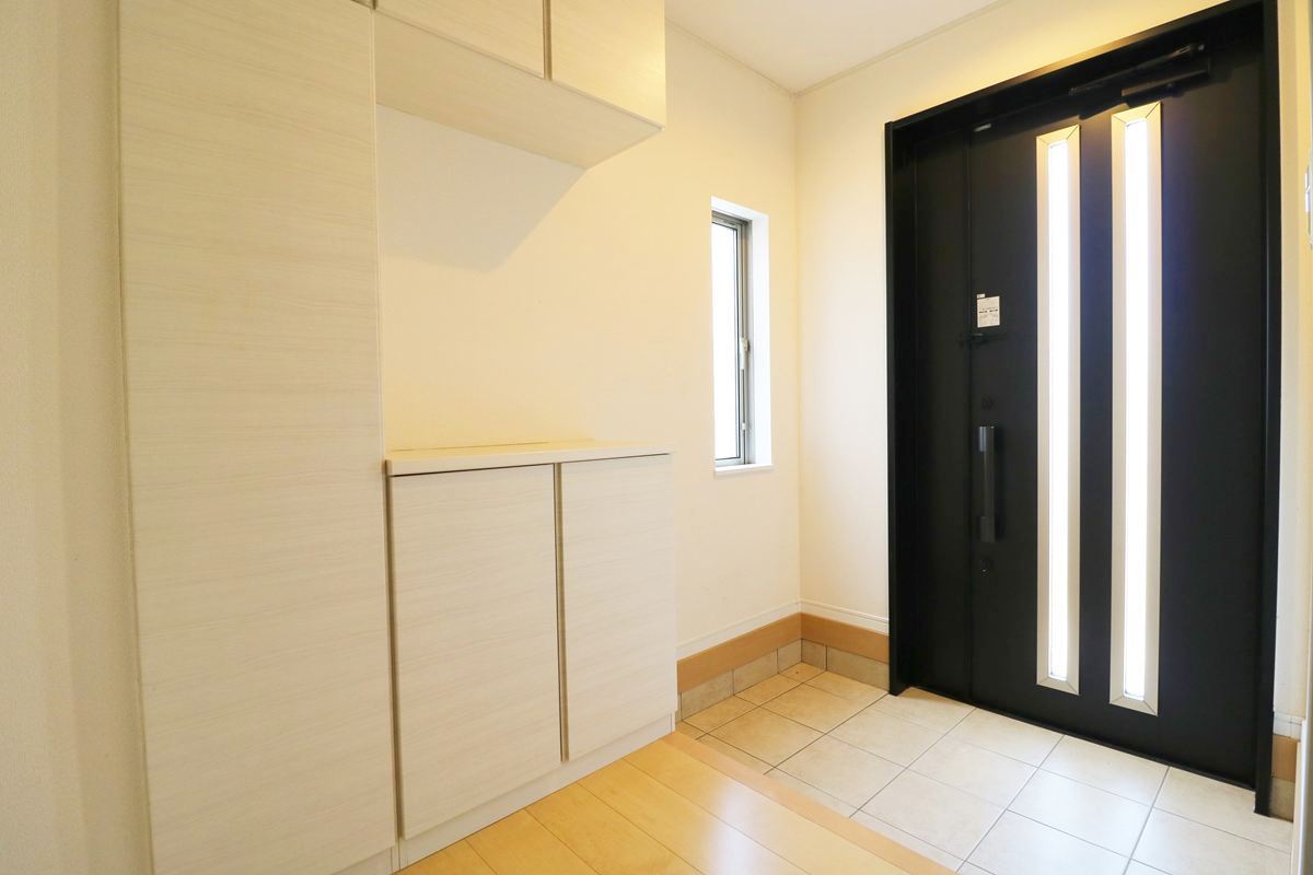 広く開放的な玄関には大きいサイズの靴箱を設置。■昭島市中神町1丁目 中古戸建て■