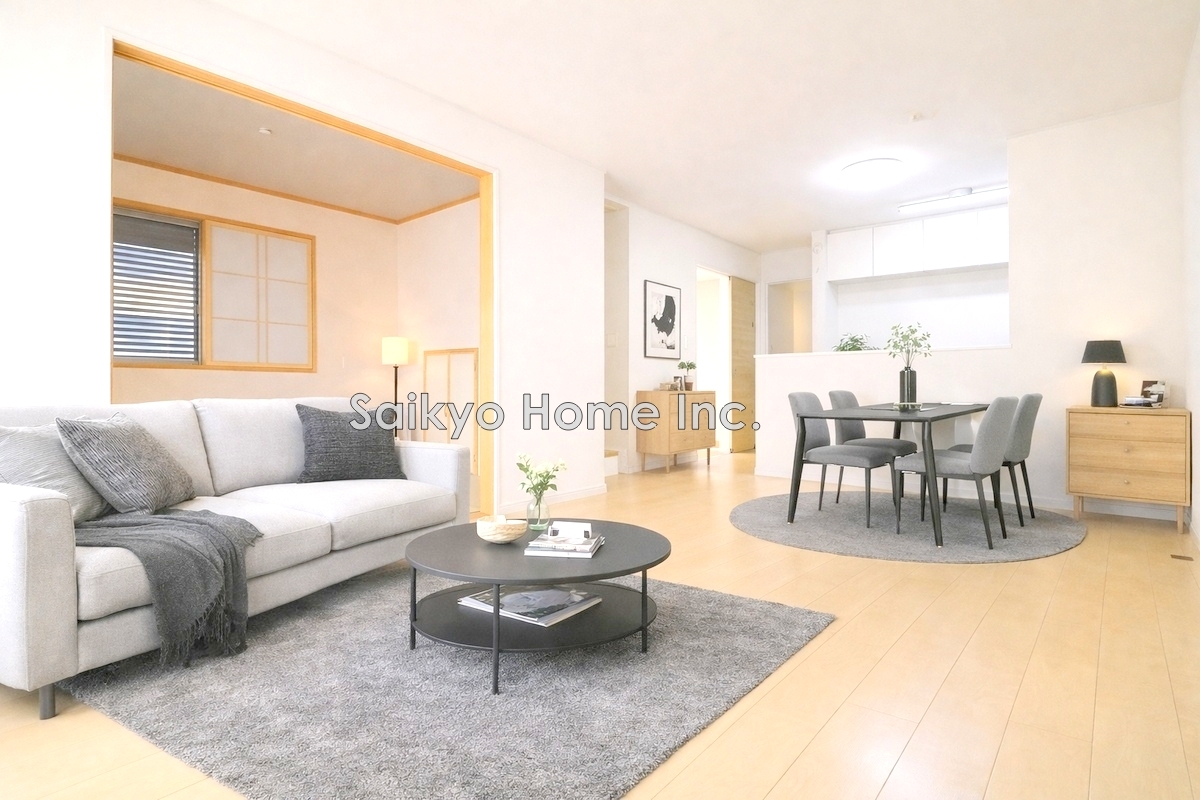家族が集うLDKは、キッチン・ダイニング・リビングが一つの空間になった間取り。大きな窓から明るさを確保。※家具等はCG加工しております。■昭島市中神町1丁目 中古戸建て■
