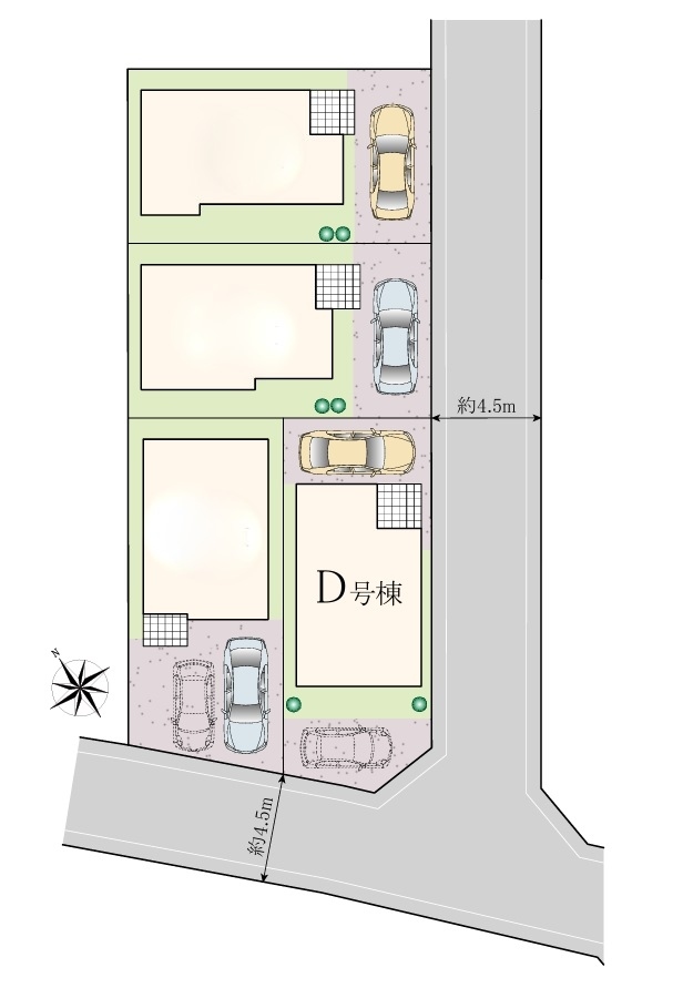 お車の出し入れがスムーズに出来る前面道路になります。ストレスを感じる事なく出来ますので駐車苦手な方もご安心いただけます。