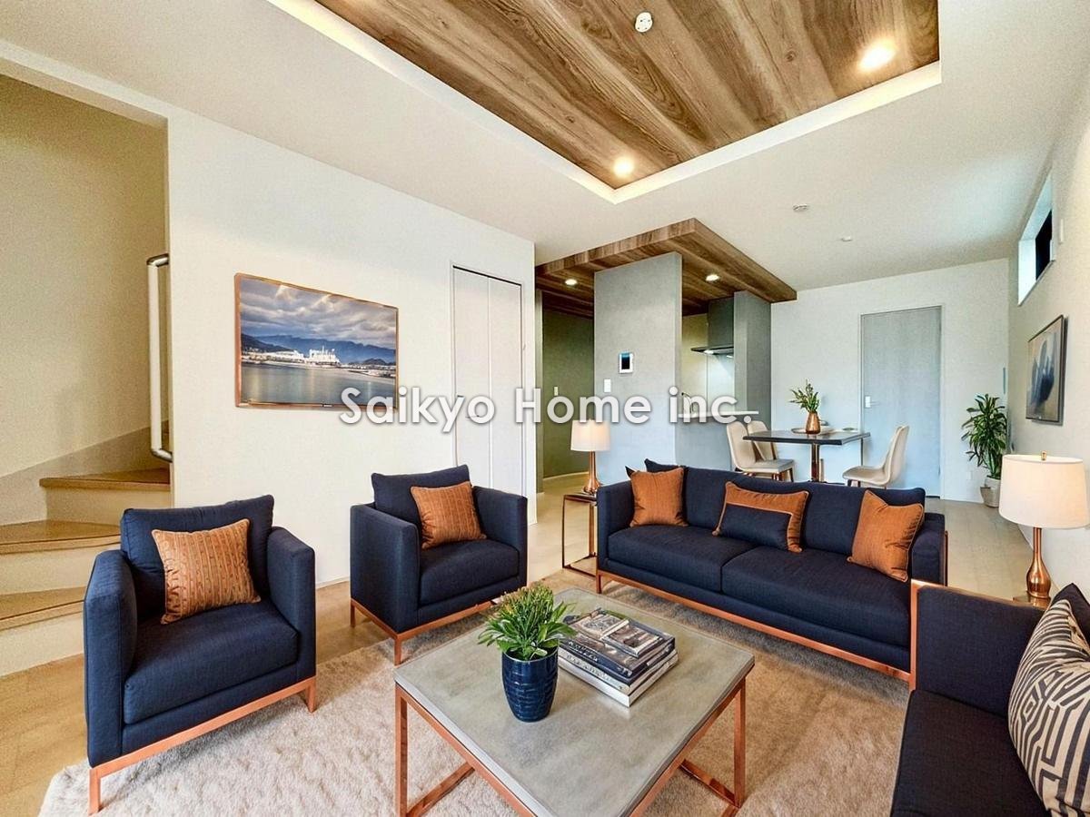 オープンでのびやかな空間を生み出すこだわりの「広がり」と「ゆとり」。家族と過ごす時間を大切にした住空間です。※家具等はCG加工しております。■府中市若松町3 新築一戸建て■