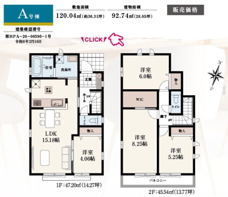 | バルコニー | 南向き | 建築確認番号 | 第HPA-26-00596-1号 |