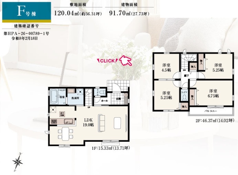 | バルコニー | 南向き | 建築確認番号 | 第HPA-26-00789-1号 |