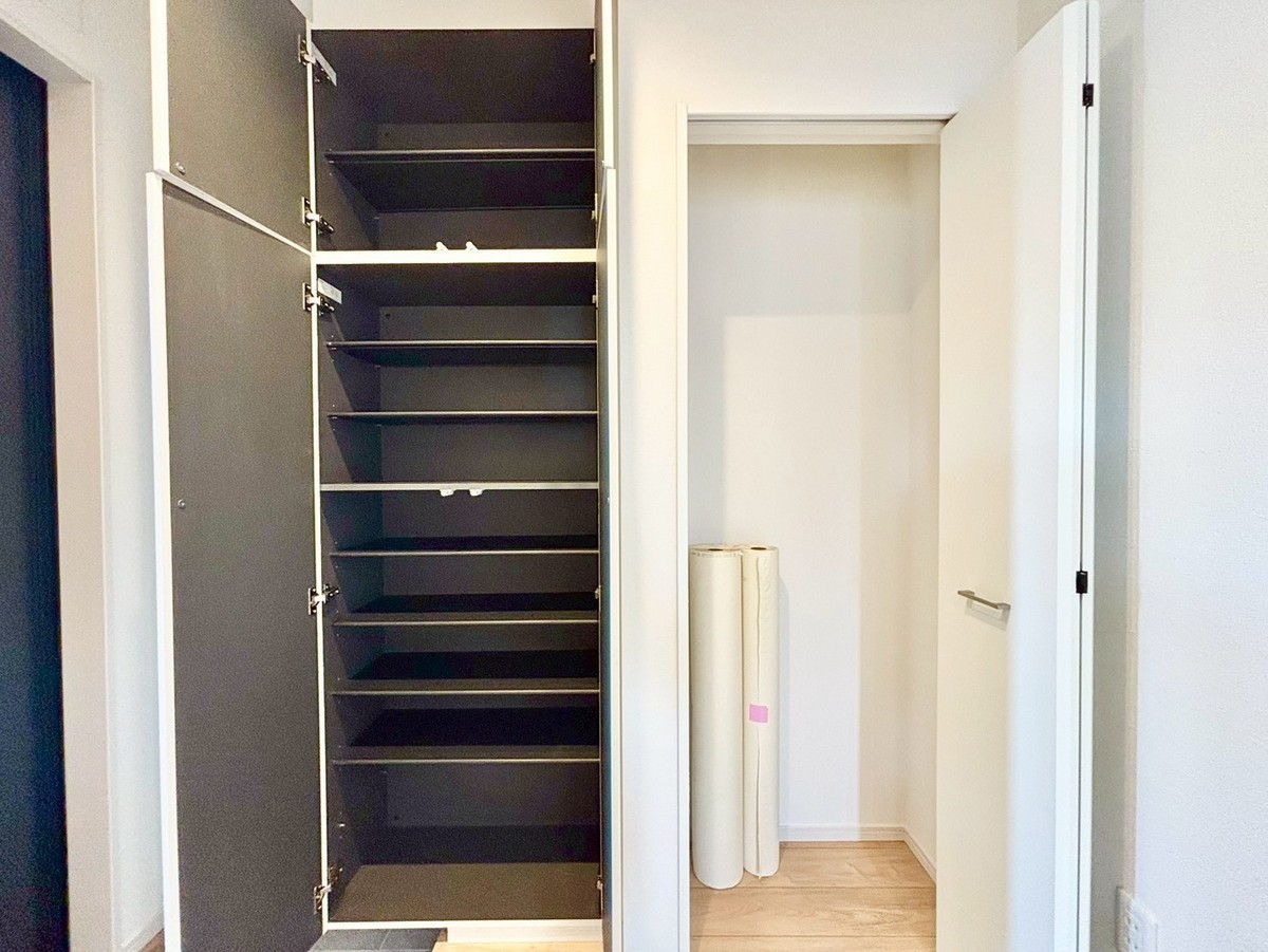 玄関は清潔感のある空間にしたいもの。ご家族が多いご家庭にはとても便利なたっぷり収納できるシューズボックス付きです。 ■府中市西府町3 新築一戸建て■