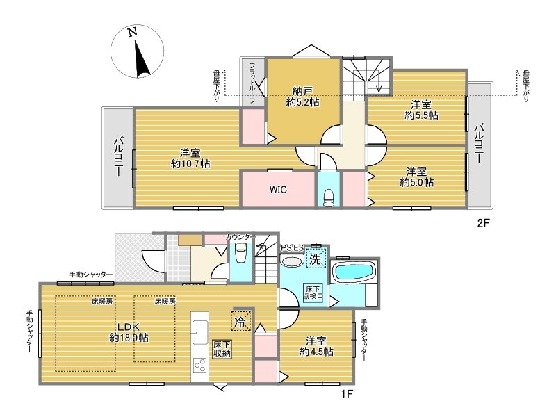 | 建物面積 | 107.35m² ~ 108.53m² 実測 | ||