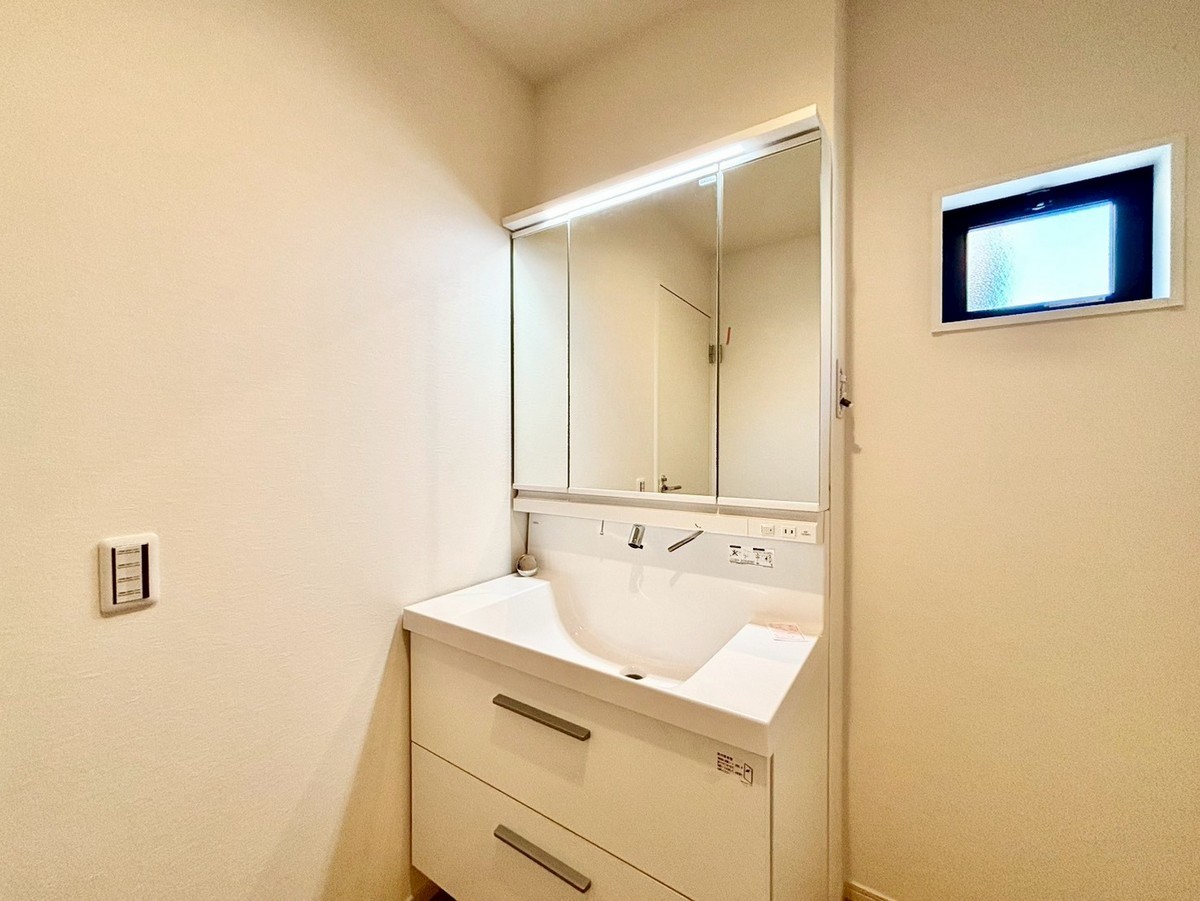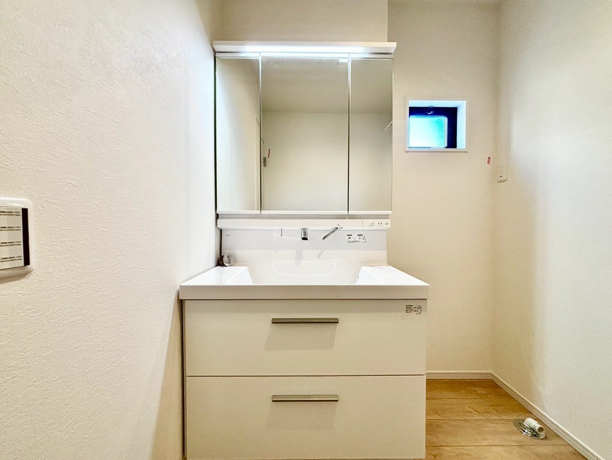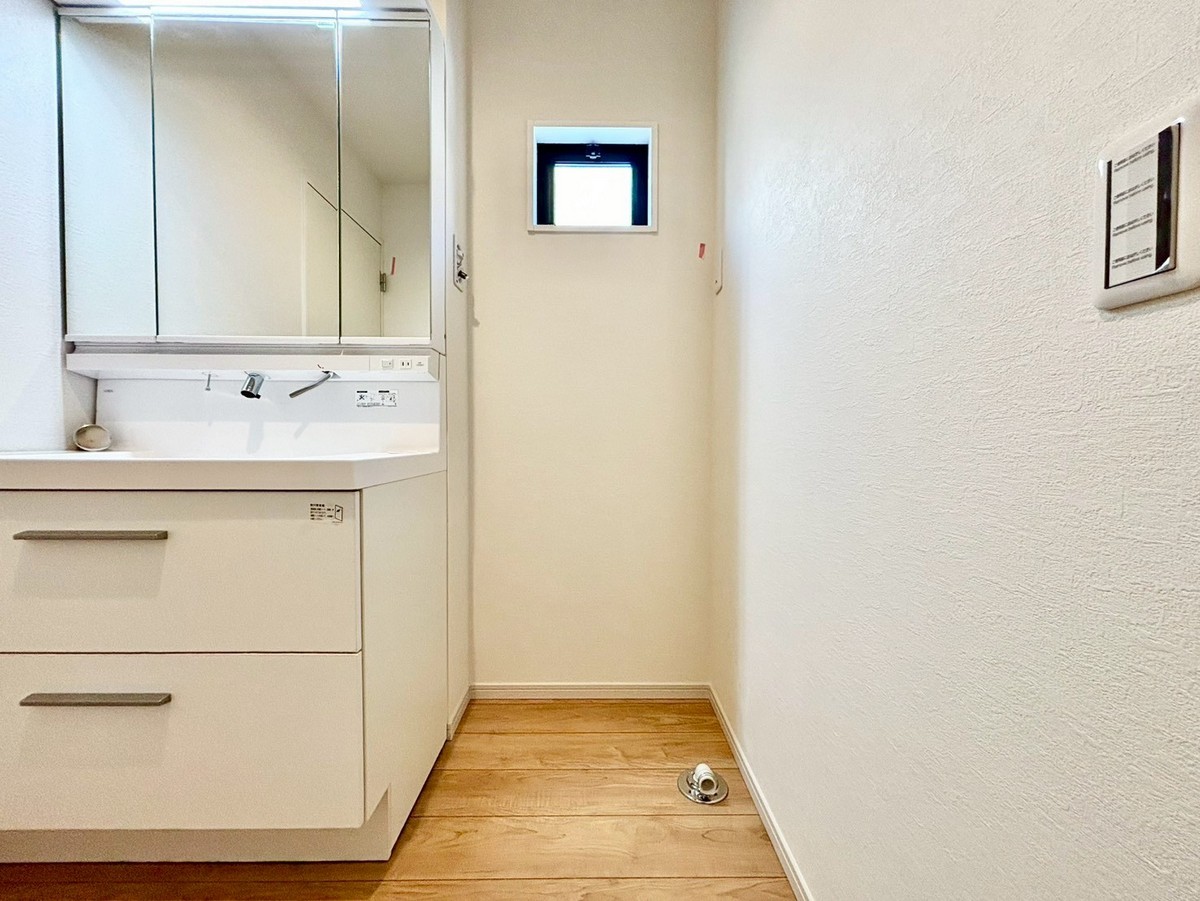 清潔なパウダールームは身だしなみチェックや肌のお手入れに最適です。収納もあり、スッキリと見映えの良い空間に拵えました。時間に余裕とゆとりを持たせます。■府中市西府町3 新築一戸建て■