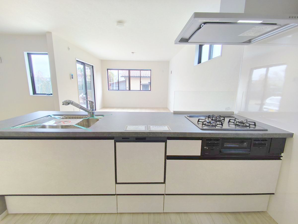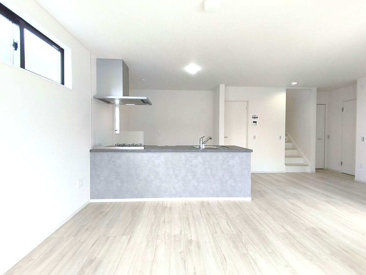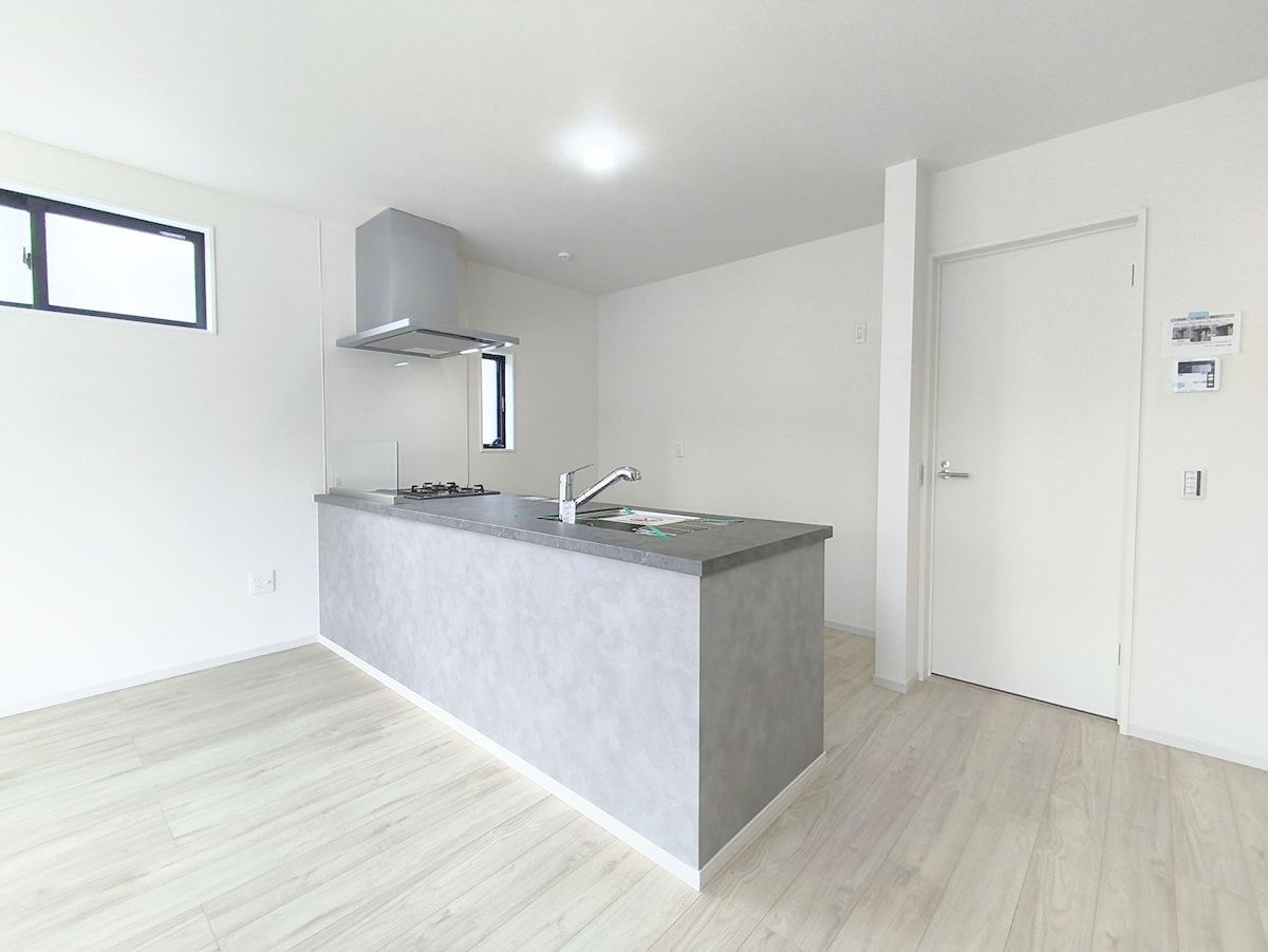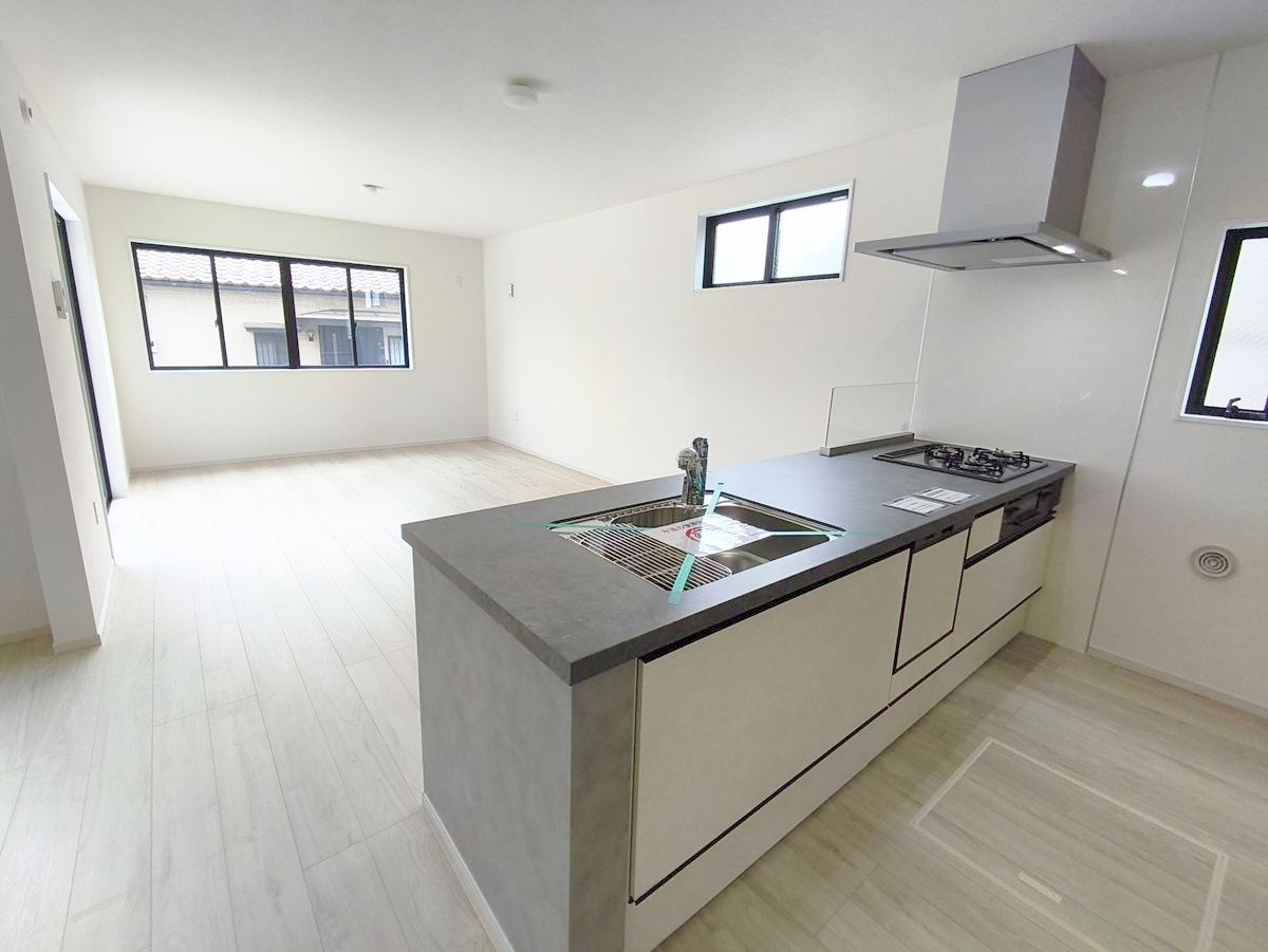 キッチンからリビング全体を見渡せるので、小さなお子様がいらしても様子を見ながら家事ができますね 八王子市富士見町 新築一戸建て■