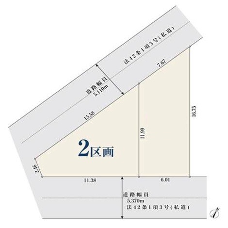 | 接道 | 西側5.22M道路に接道 南東側5.4M道路に接道 |