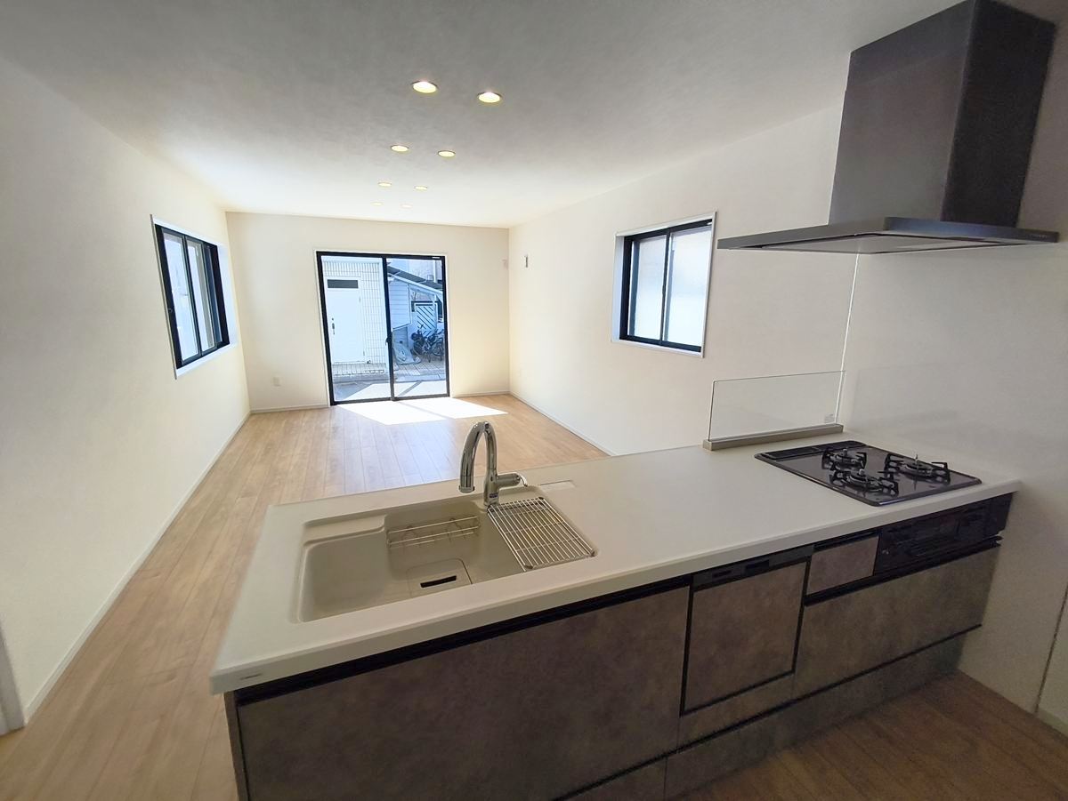キッチンに立った位置から、リビングにいる家族に目線が届く見守りキッチン! ■国分寺市日吉町4丁目 新築一戸建て■