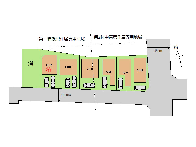 | 接道 | 南側5M私道に接道 東側8M私道に接道 |
