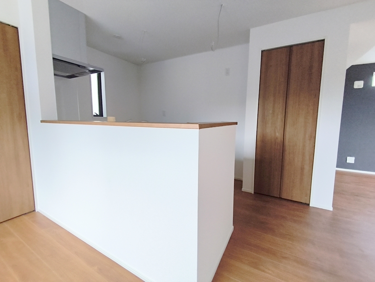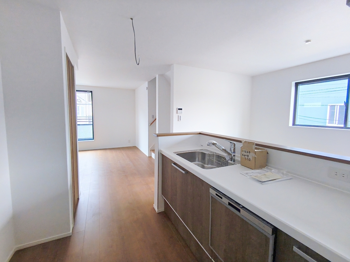 キッチンに立った位置から、リビングにいる家族に目線が届く見守りキッチン! ■八王子市大和田町3 新築一戸建■