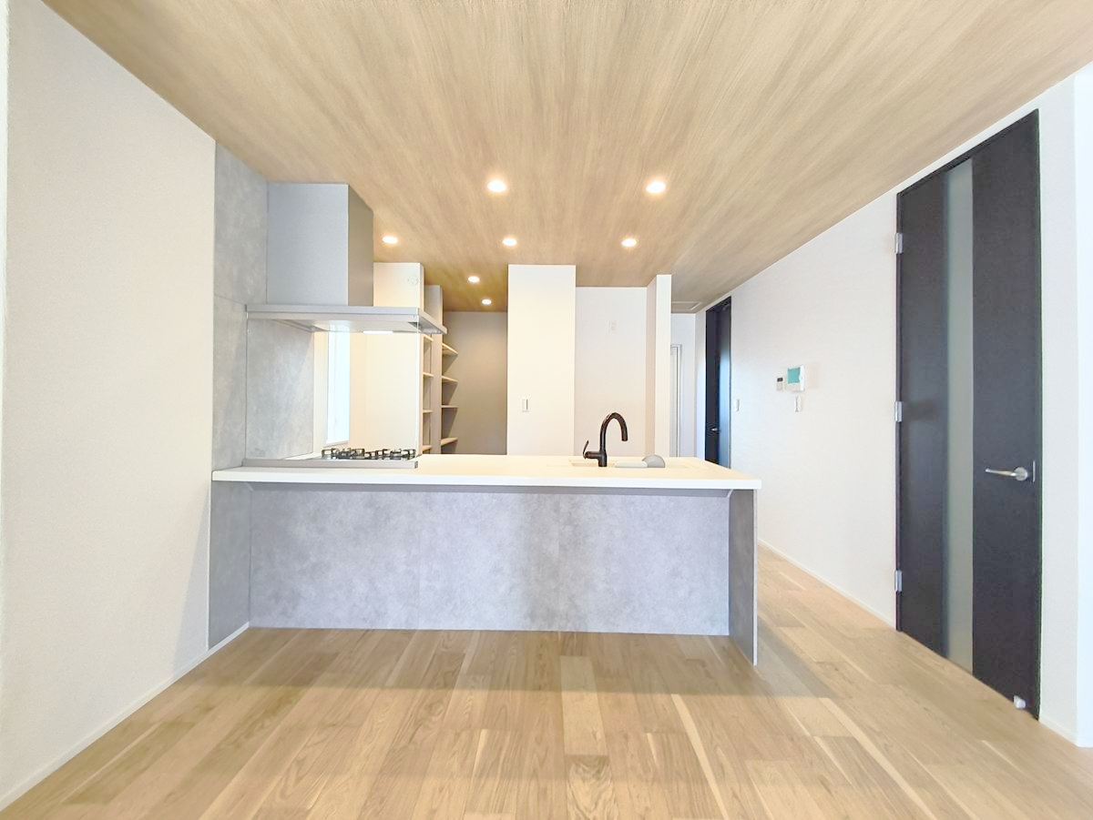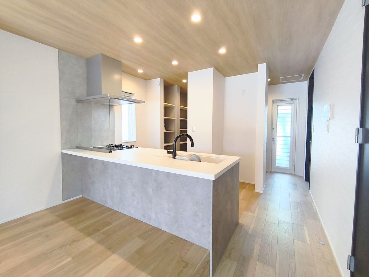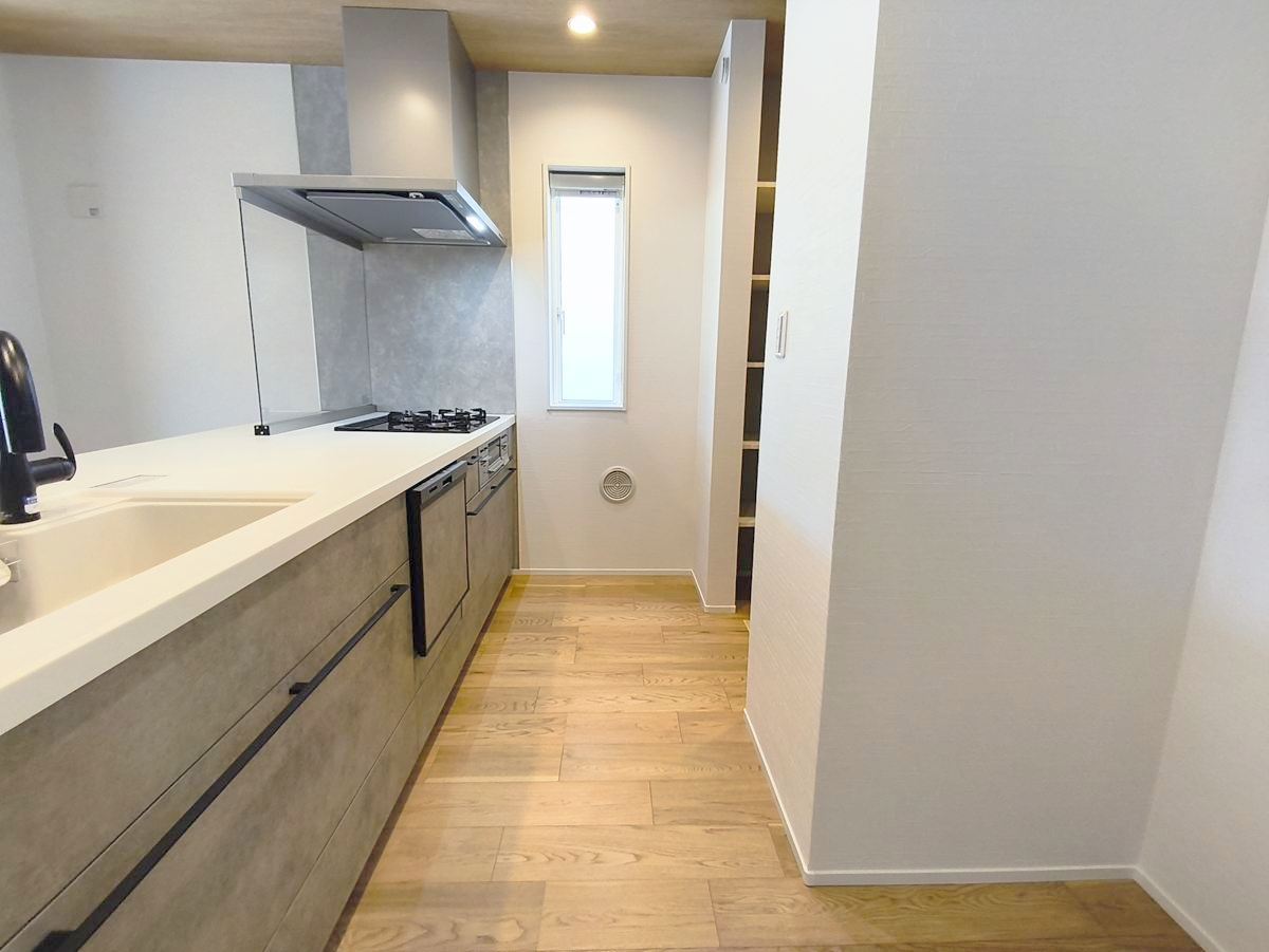 フルオープンなキッチンはリビング全体を見渡せます。大型のパントリーもあり収納力豊富で見せるキッチンの実現が可能に。いつもキレイにしておきたくなるキッチンです。 ■八王子市めじろ台3 新築一戸建■