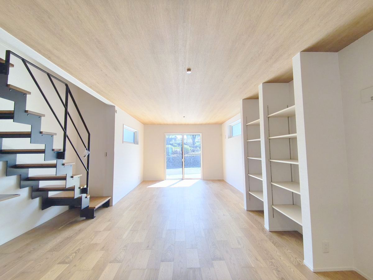 21帖超の広々LDK。南に面した窓からは暖かな陽光がたっぷり差し込みます。また通気性にも優れた設計です。 ■八王子市めじろ台3 新築一戸建■