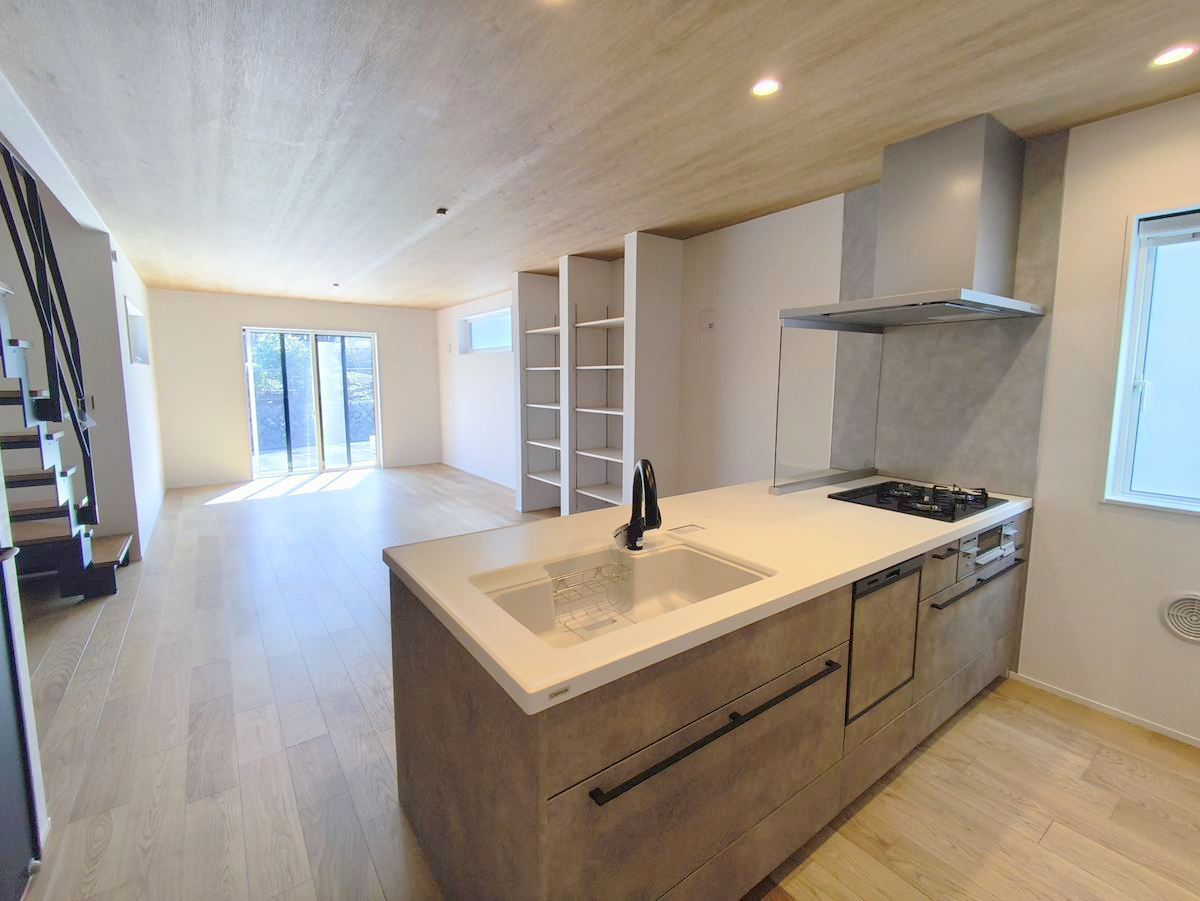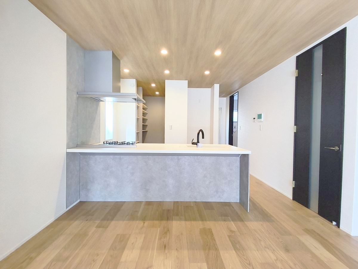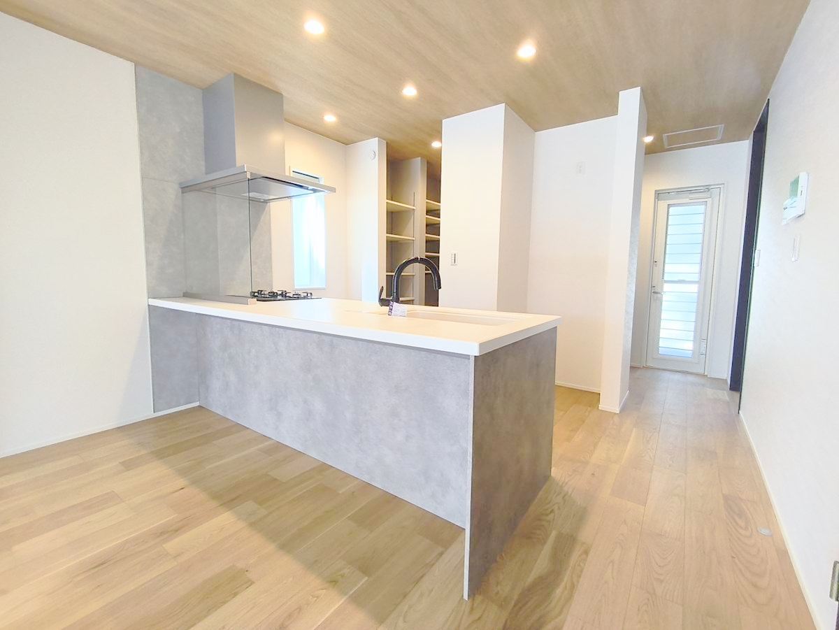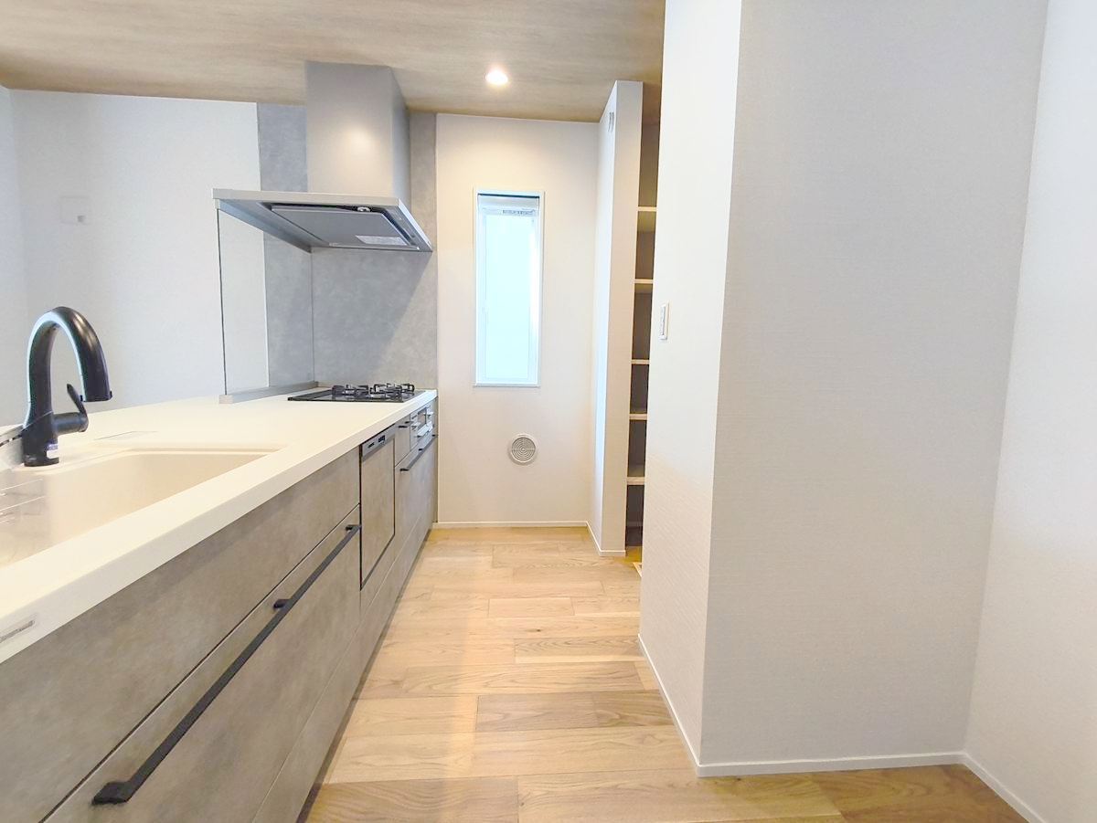 フルオープンなキッチンはリビング全体を見渡せます。大型のパントリーもあり収納力豊富で見せるキッチンの実現が可能に。いつもキレイにしておきたくなるキッチンです。 ■八王子市めじろ台3 新築一戸建■