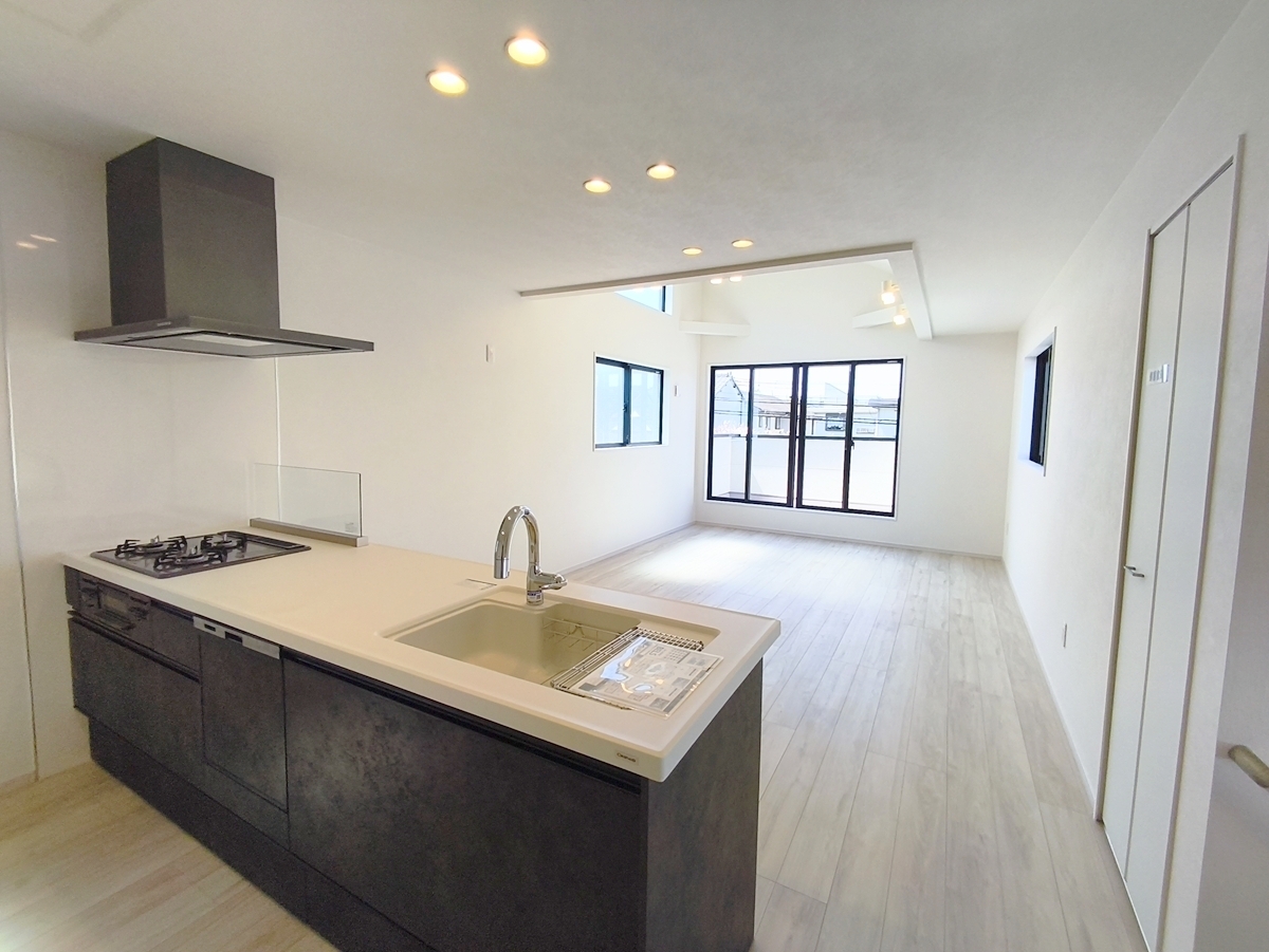 フルオープンな対面キッチンはお部屋全体が見渡せます。家事をしながら家族と楽しく会話したり、小さなお子様に目を配ることができます。 ■小金井市緑町3 新築一戸建て■