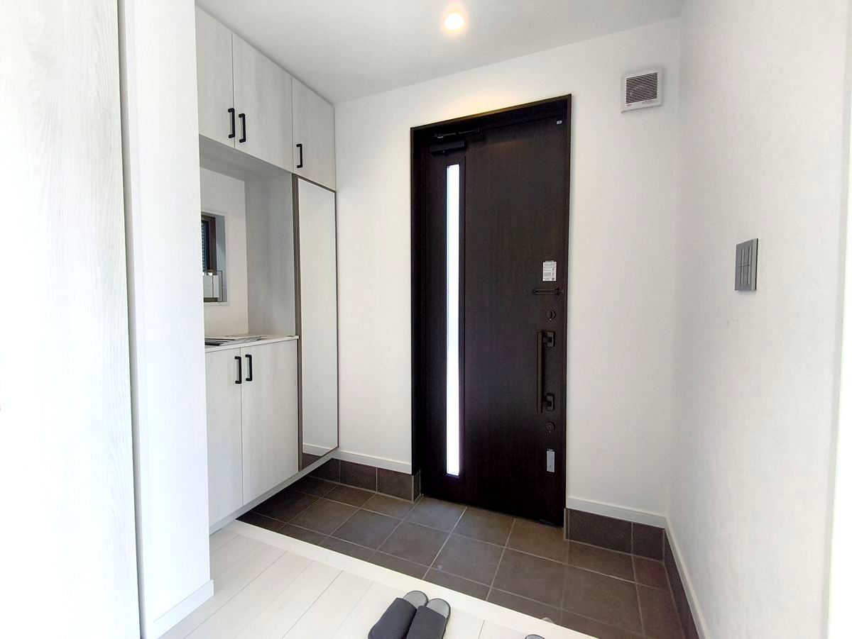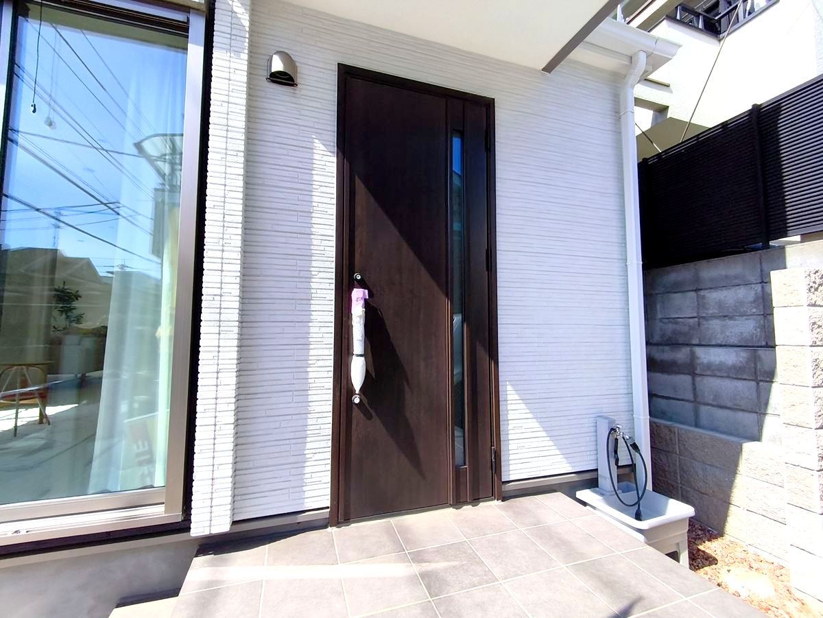 清潔感あふれるエントランスと高級感ある玄関扉が出迎えます。思わず「ただいま」と言いたくなるそんな玄関先です。 ■国立市中2 新築一戸建て■