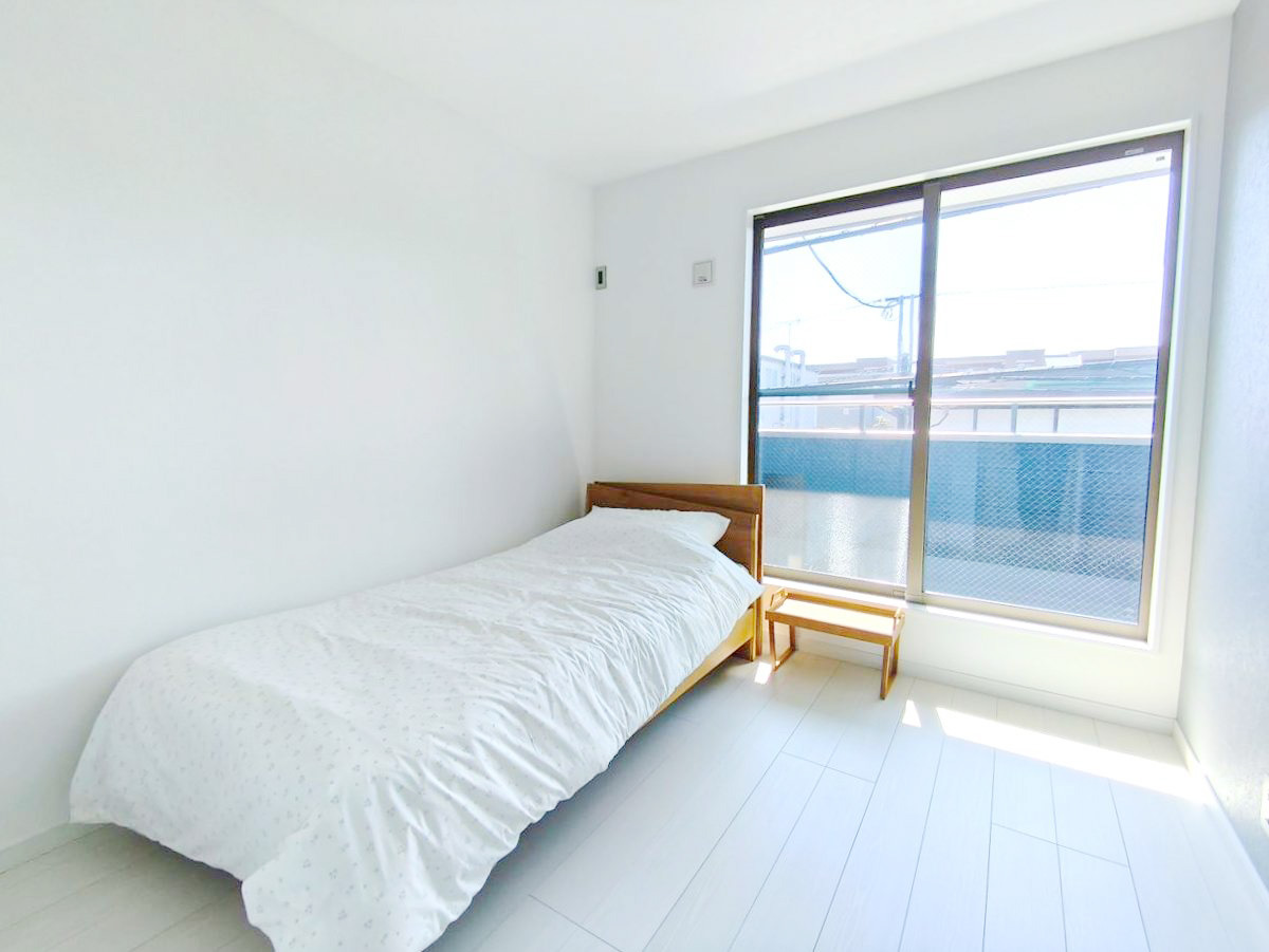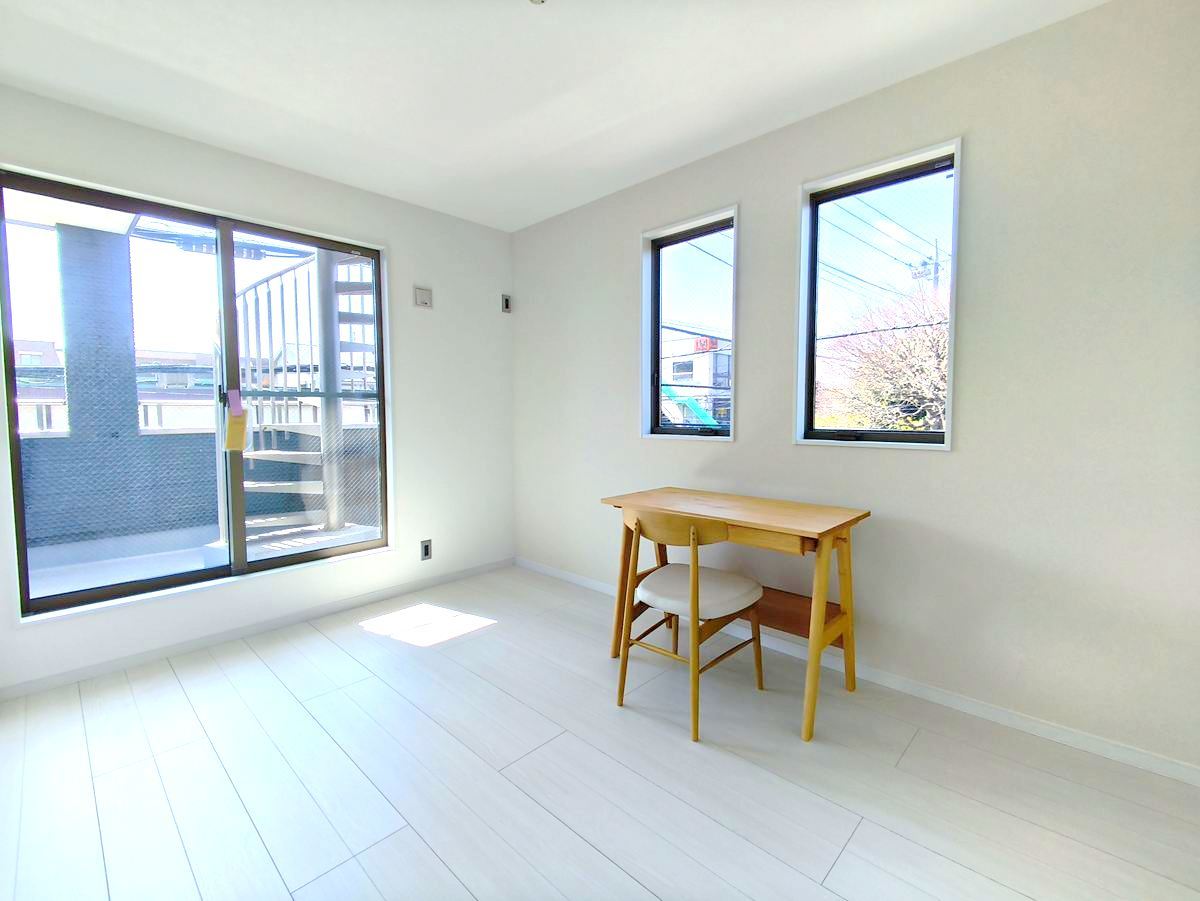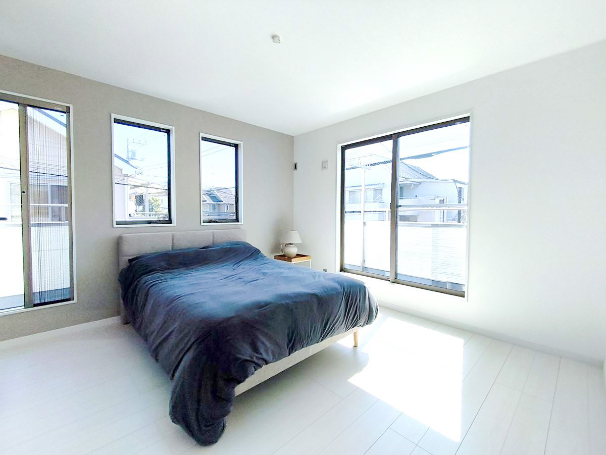 南に面した8帖の主寝室。ナチュラルな色合いのフローリングは明るく清潔感のある空間に。 ■国立市中2 新築一戸建て■