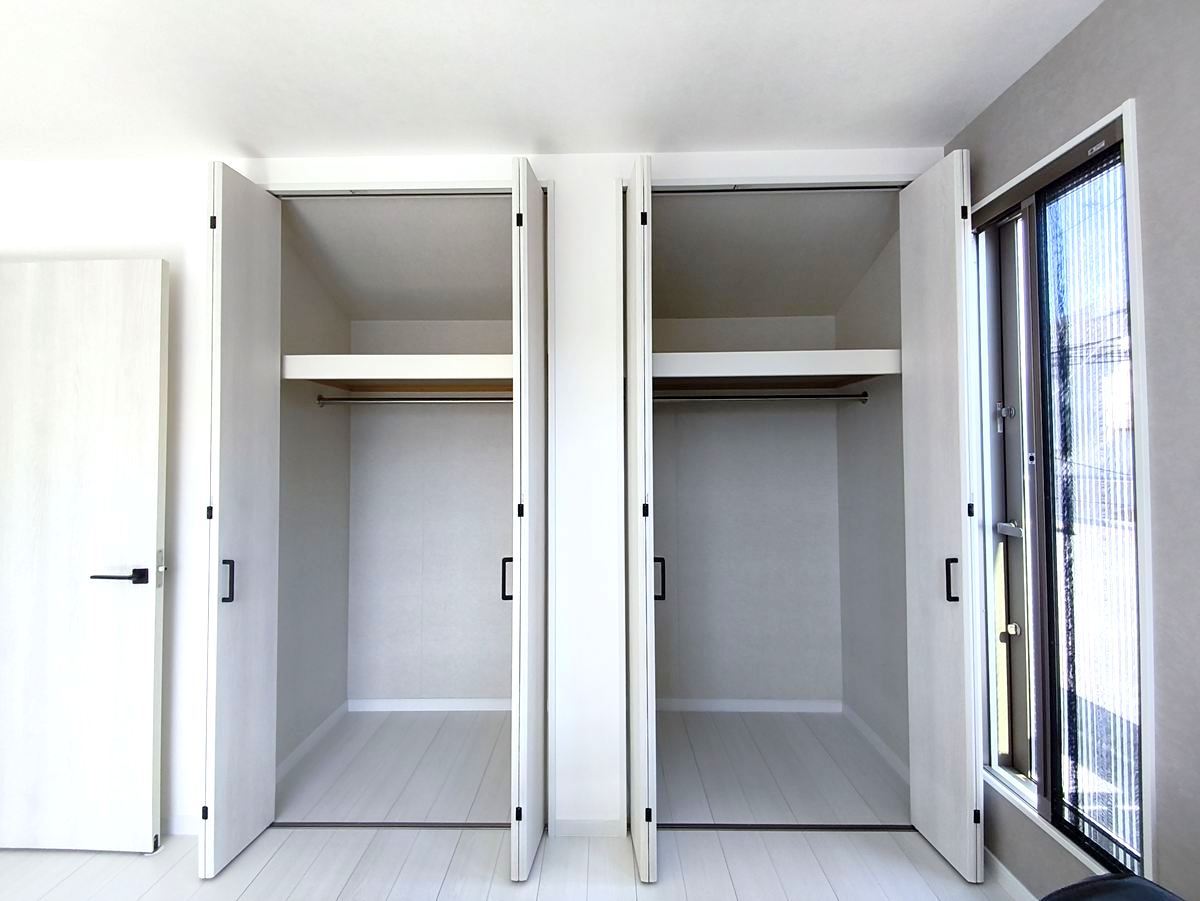 収納たっぷりの主寝室はダブルクローゼット。衣類と小物を仕分けしたり、ご夫婦での使い分けに、便利に利用できます。 ■国立市中2 新築一戸建て■