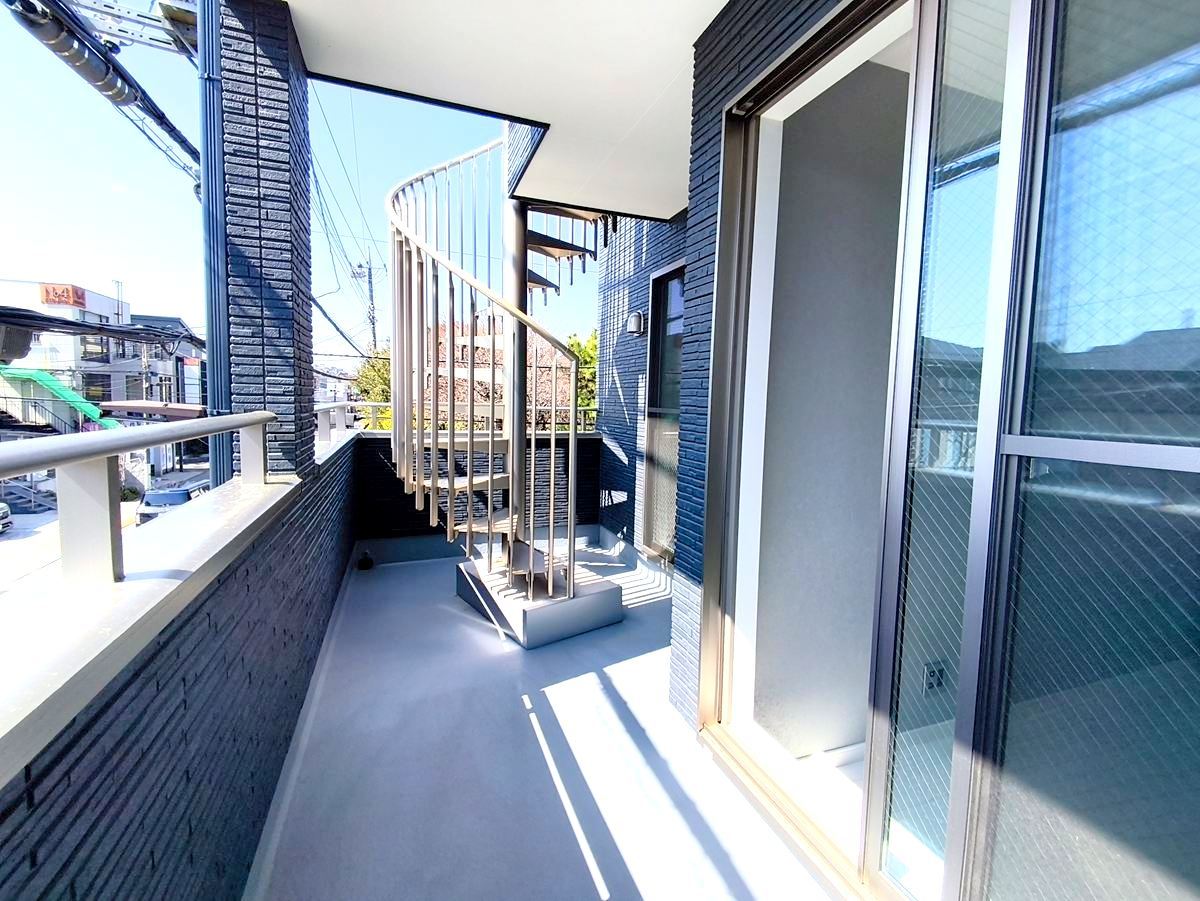 たっぷりの陽光と心地よい風が舞い込むバルコニー。螺旋階段からルーフバルコニーへ。 ■国立市中2 新築一戸建て■