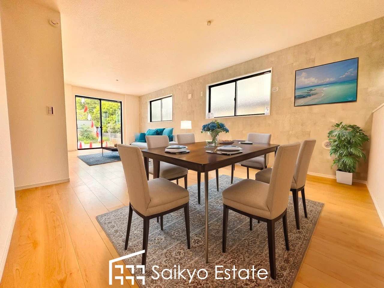 【施工例】広々としたLDKは家具の配置など楽しめます!ダイニングテーブルとソファーを置いても余裕の広さです!