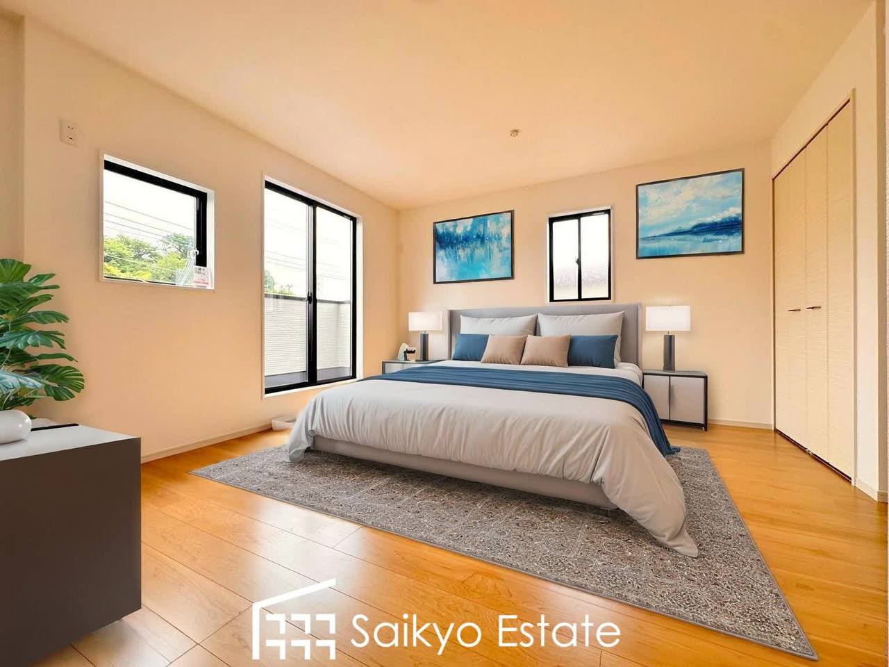 【施工例】バルコニーに出入りの出来る洋室は、窓の面積が広く、陽光を多く取り入れられるため、明るく気持ちの良い空間です♪