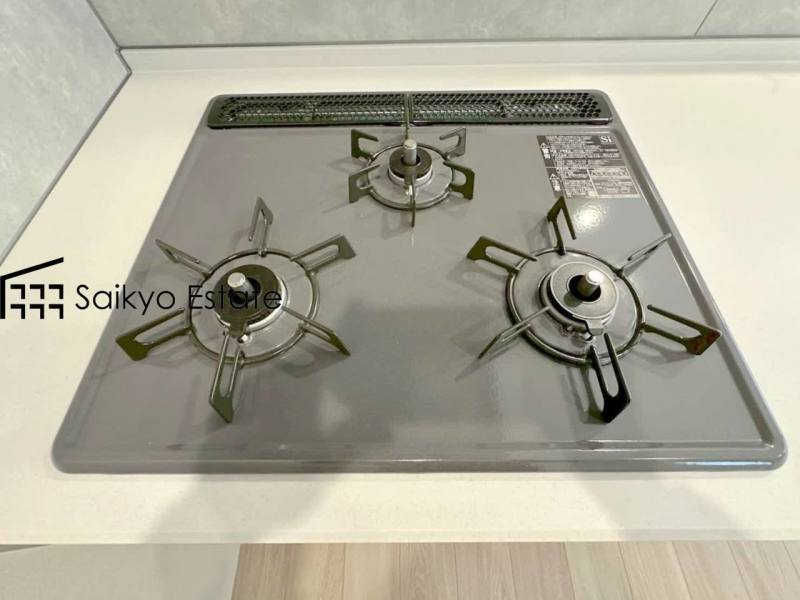 3口ガスコンロシステムはたくさんの料理が同時に作れて便利な上、凹凸が少ないフラットトップなのでお掃除も楽々です。