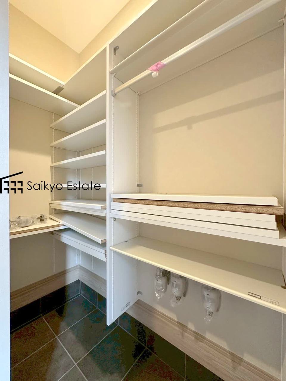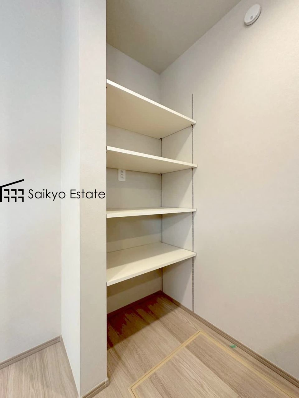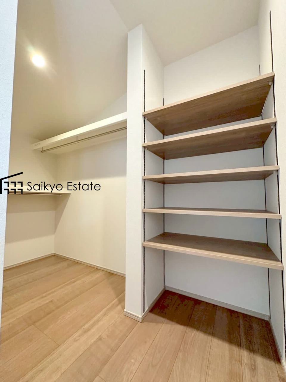 10.75帖の洋室のWIC横に可動棚による収納スペースもございます!お好みの物を飾ったり、用途様々です。