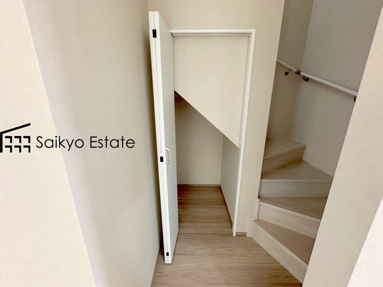 1階リビングには階段下を利用した収納スペースがございます。日用品の収納や備蓄庫としても使える便利な空間です。