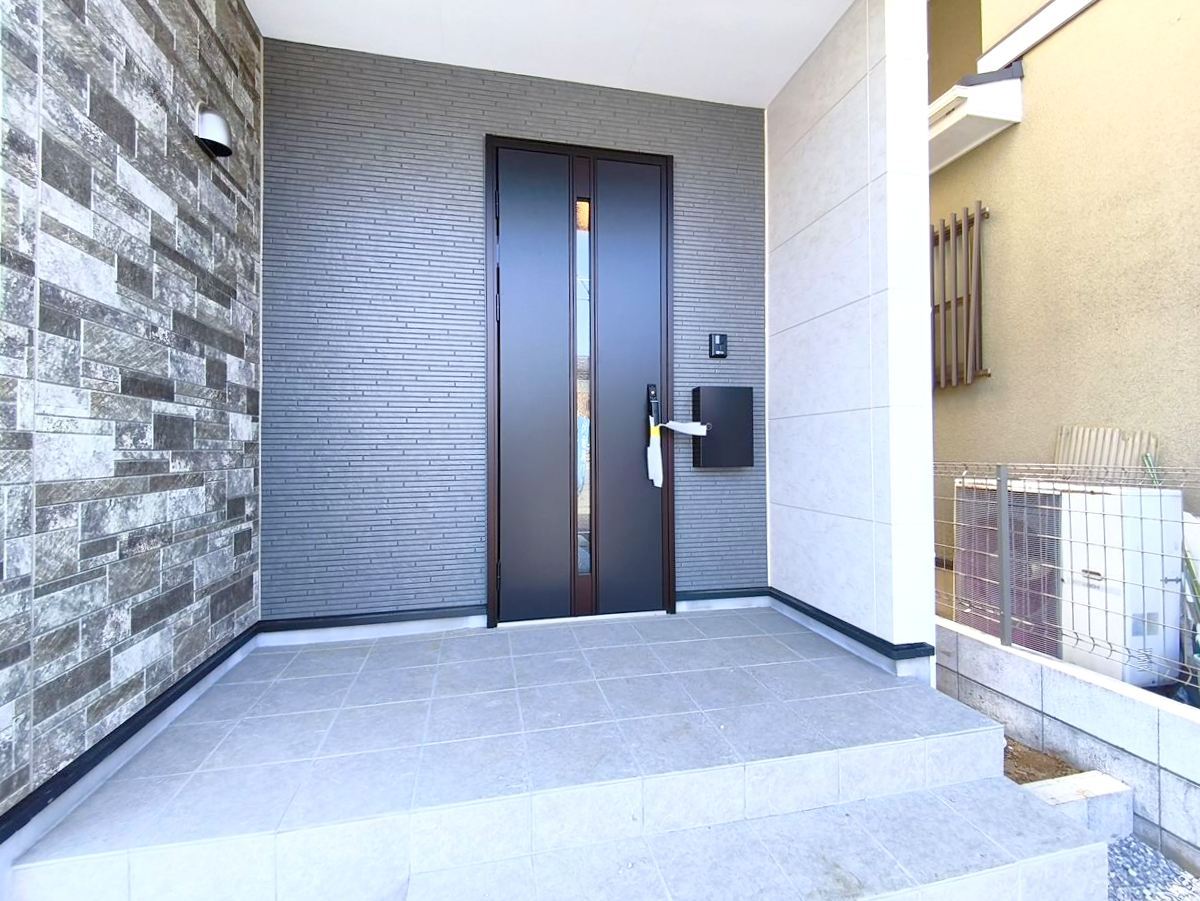 清潔感あふれるエントランスと高級感ある玄関扉が出迎えます。思わず「ただいま」と言いたくなるそんな玄関先です。■日野市万願寺6 新築一戸建て■